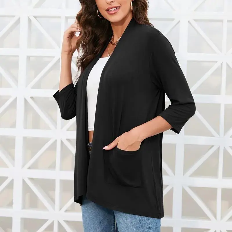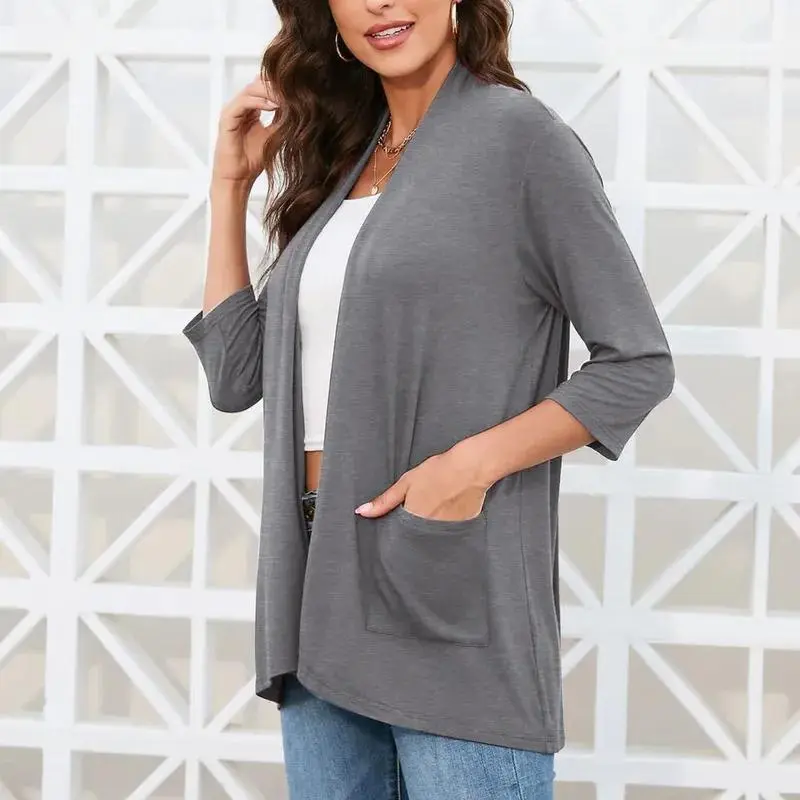 Womens Casual Lightweight Cardigan With Pockets 3 4 Sleeve Front Open Dust DusterFeatures: Season:Fall and Winter Sleeve Length: Long Sleeve Package include:1 PC Women Shirts.