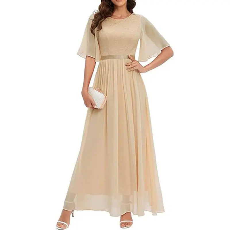 [Lace Bridesmaid Dress for Wedding] Solid Lace Aline Bridesmaid Dress, Elegant Crew Neck Dress For Wedding Party, Women's Clothing Wedding/Occasion/Engagement/Ceremony/Evening dress