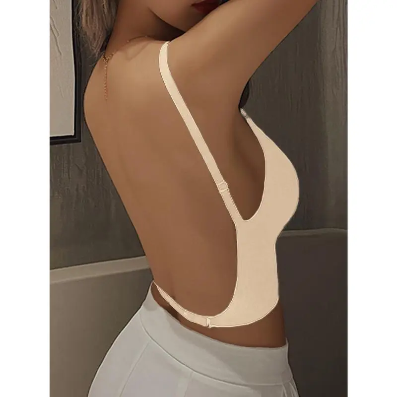 Women's Sexy Backless Push-Up Bra - U-Shaped, X-Back with Detachable Adjustable Straps, High Support, Backless Dress Accessory | Detachable Strap Seamless Bra