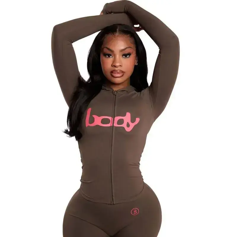 2025 Autumn New Versatile Letter Print Hooded Long Sleeve Cardigan Top and Long Pants Set