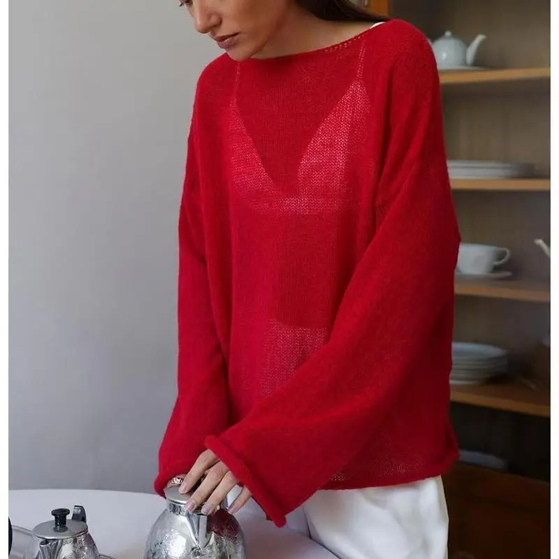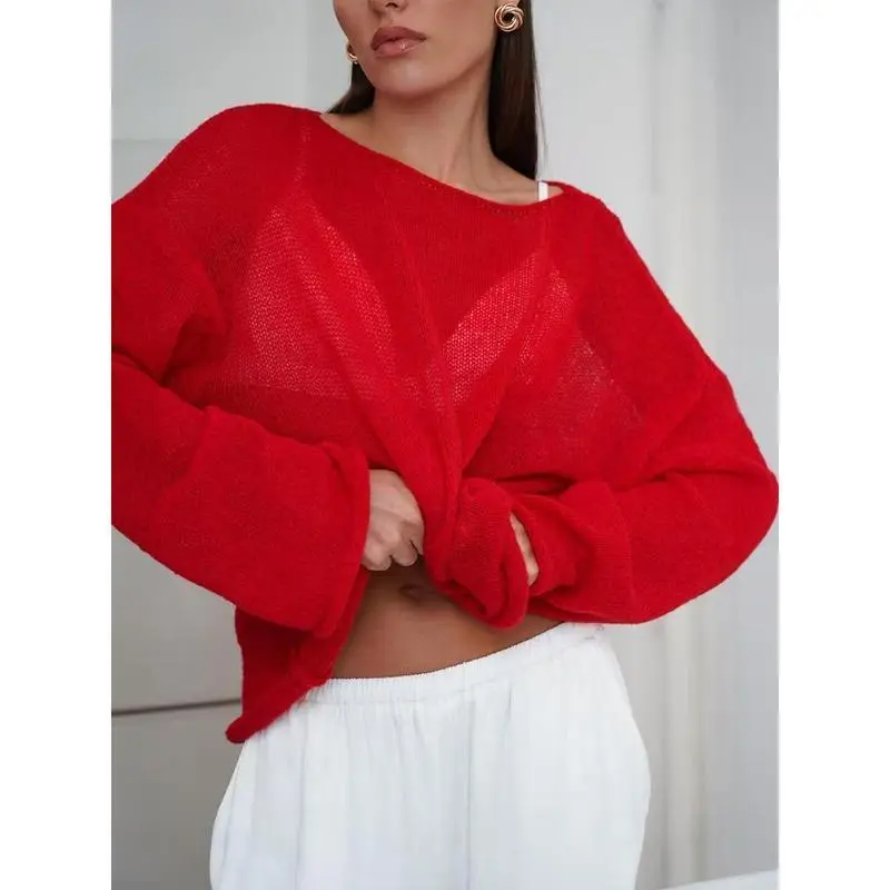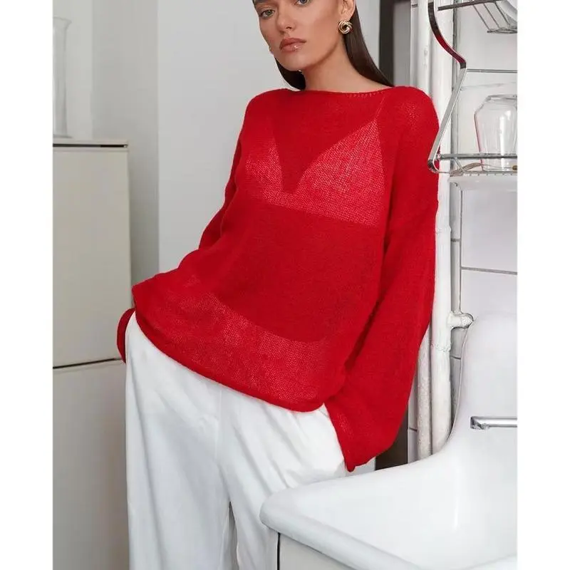 2025 Trendy Sheer Knit Sweater for Women – Hollow Out Top | Breathable Mesh, Loose Fit, Casual Streetwear/Stay effortlessly stylish with this 2025 trendy sheer knit sweater – the perfect blend of Y2K fashion and modern comfort!Designed with a breathable hollow-out mesh, this loose-fit top keeps you cool while adding a chic, see-through aesthetic to any outfit./✨Why You’ll Love It:/Fashion-Forward Design: Embrace the latest 2025 trends with this -inspired top, featuring a sheer knit and hollow-out details for a bold yet feminine look./Ultra-Comfortable: The soft, lightweight fabric and relaxed fit ensure all-day ease, making it ideal for casual wear, streetwear, or layering./Breathable & Airy: The mesh construction allows for optimal airflow, keeping you comfortable in any season./Versatile Styling: Pair it with high-waisted jeans, biker shorts, or a slip dress for a streetwear vibe – perfect for daytime outings, concerts, or a night out./🔥Perfect For: fashion lovers/Streetwear enthusiasts/Layering essential/Spring & summer wardrobe must-have