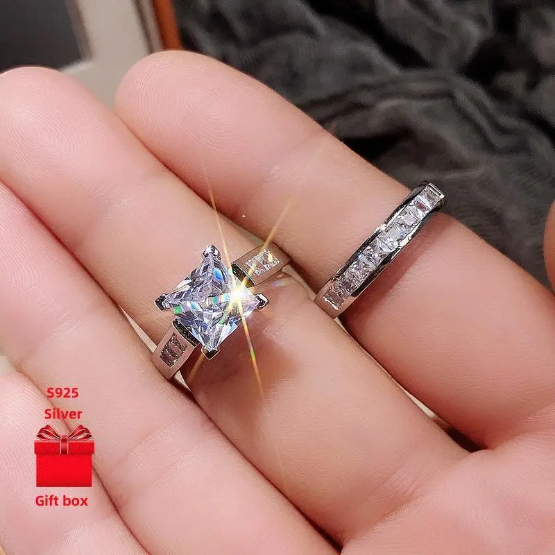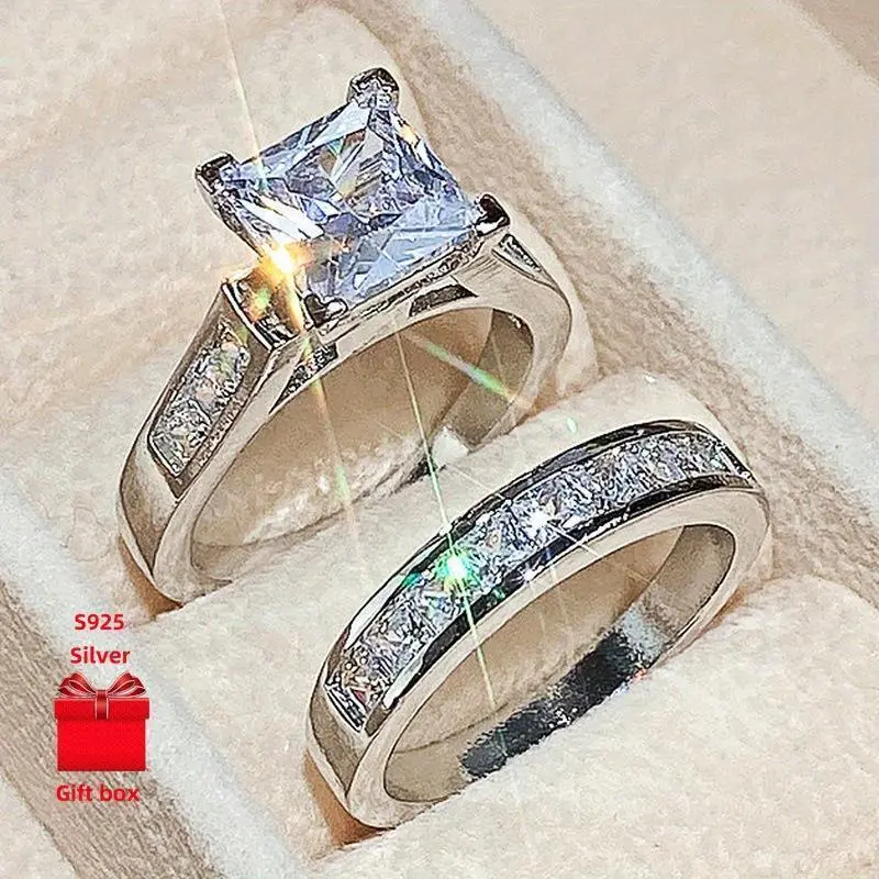 2-Piece 925 Silver Square Wedding Ring Set for Women - Elegant Exquisite Design with Gift Box - Perfect for Daily & Festival Gifts