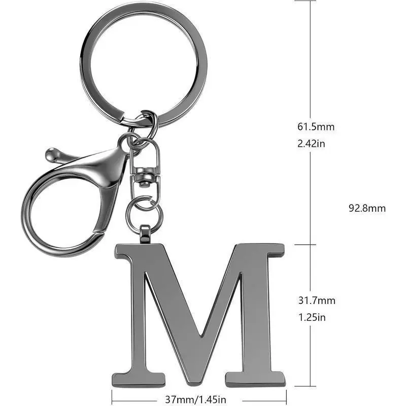 Letter Size, 3.3CM*3.5CM(1.3in*1.37in), Weight, 18g/Alloy material/Creative design and Structure, stylish and simple design,Meaningful letter/Intended Use,car key chain,purse keychain,handbag keychain,schoolbag keychain,backpack keychain,home key chain and son on./package with a box