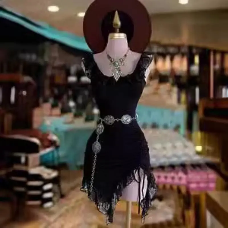 Fabric name: polyester/Pattern: Solid Color/Craft: Collage/Style/Style: Screw/Combination form: single piece/Skirt length: medium skirt/Skirt: irregular skirt/Collar type: round collar/Sleeve type: sleeveless/Sleeve length: sleeveless/Waist shape: mid-waist/Popular elements: Ruffle edges/Year/Season: Summer 2024/Main fabric composition: polyester (polyester fiber)/Main fabric composition 2: Polyester (polyester fiber)/Article No.: 6012-Cloud Sleeveless Lace Dress/Color: Black/Size: S, M, L, XL, XXL, XXXL/Style type: Street trendy/Plate: Screw/Main fabric composition content: 90% (inclusive) - 95% (excluding)/Style: Elegant/style type: elegant temperament/Whether to cross-border supply: Yes/Main fabric composition 2 content: 90% (inclusive) - 95% (excluding)/Main downstream sales areas 1: Europe and the United States/Main downstream sales areas 2: Europe and the United States