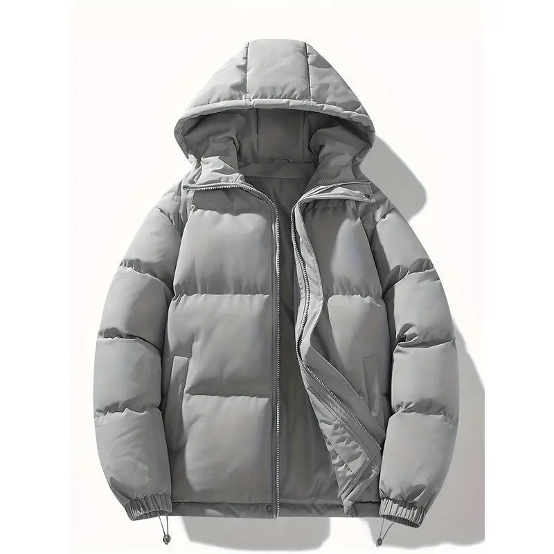 Unisex Hooded Puffer Jacket, Polyester Fiber Filled, Non-Stretch Solid Color, Long Sleeve, Regular Fit, with Drawstring, Zipper Placket, for Daily Casual Wear, Spring/Autumn/Winter Coat, MD3333