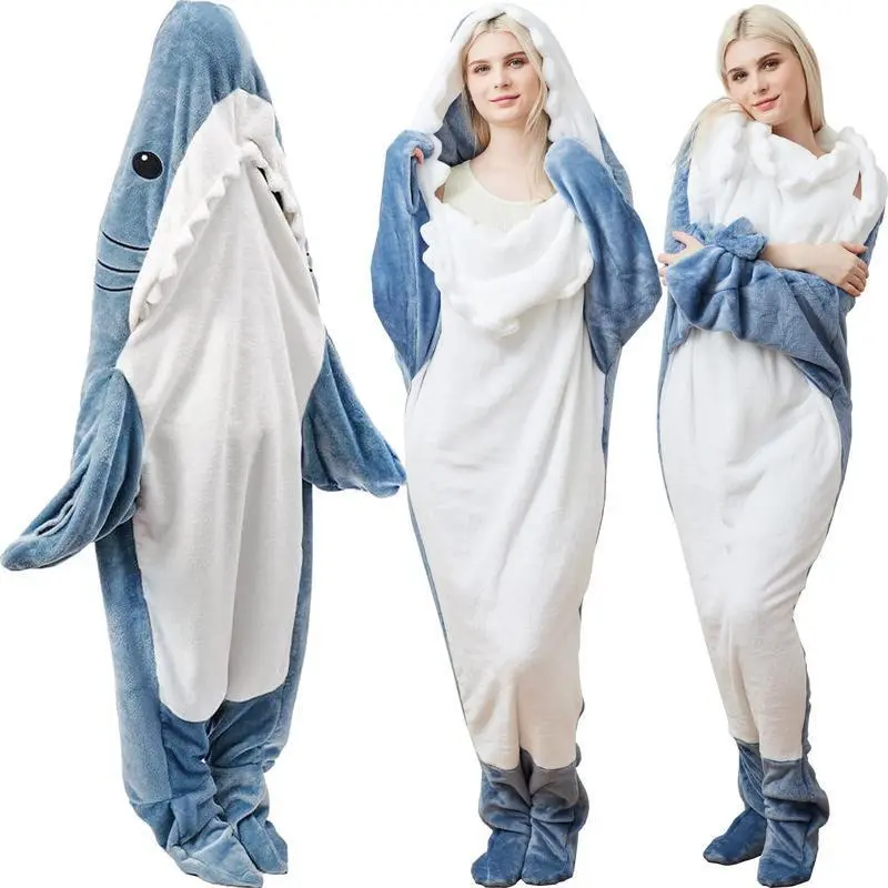 Wearable shark blanket hooded sweatshirt one-piece adult&sleeping bag