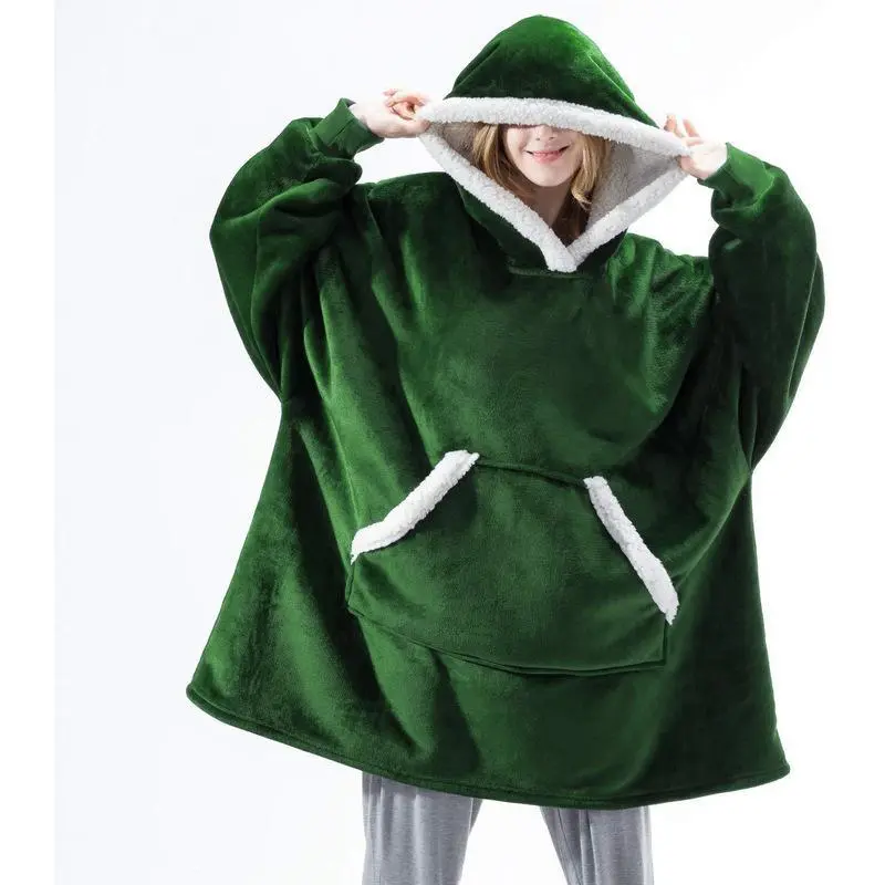 TFNOSIZE Christmas Wearable Blanket Hoodie with Pocket – Oversized Red & Green Fleece Sweatshirt Blanket for Holiday Winter Warmth & Cozy Comfort