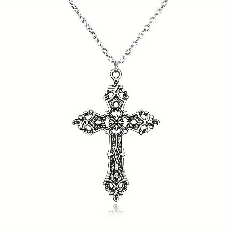 Gothic Punk Cross Pendant Necklace-Vintage Bohemian Style, Silver Plated Stainless Steel Bracelet, Suitable for Casual Decoration