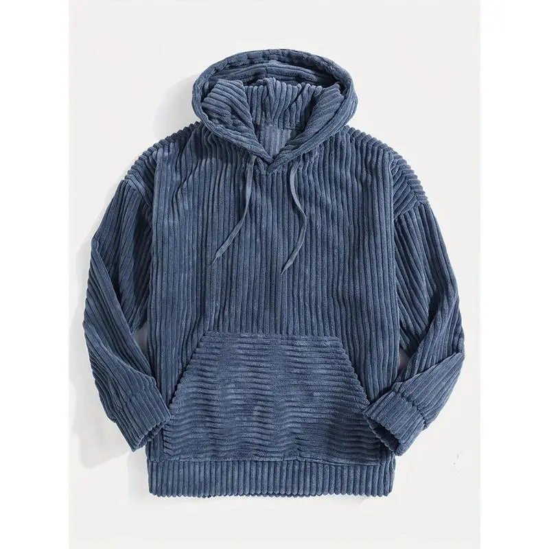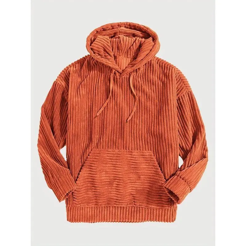 [Vintage Corduroy Hoodie] Vintage Corduroy Men's Hoodies - Casual Pullover Hooded Sweatshirt with Kangaroo Pocket for Winter Fall - As Gifts Tops Long Sleeve