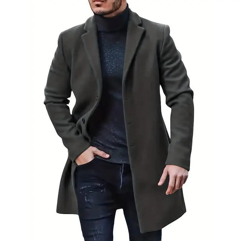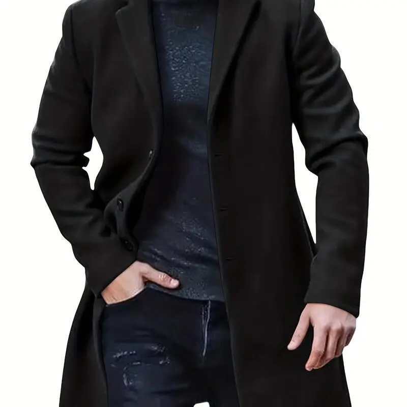 Men'strenchwithslimfit,notchlapel,winterwarmlongcoat,coat