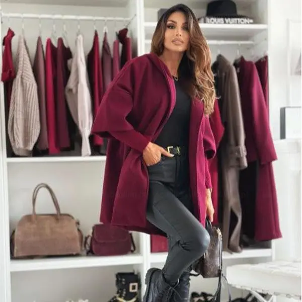 Women��s Oversized Wool Blend Coat Open Front Cape Jacket Elegant Long Sleeve Loose Outerwear with Pockets Casual Winter Coat for Fall and Winter Outfits