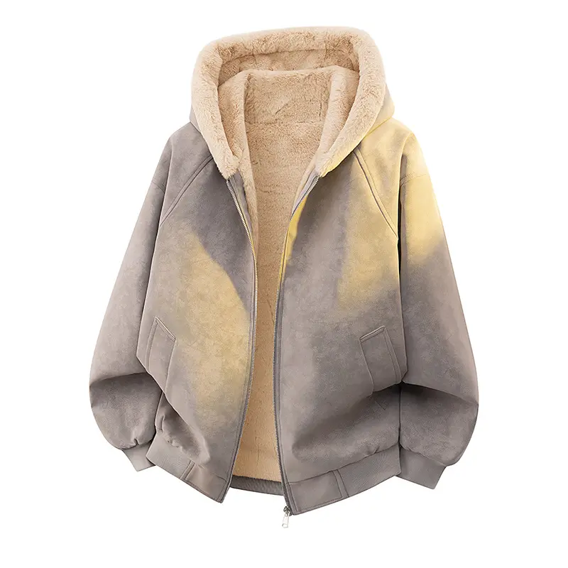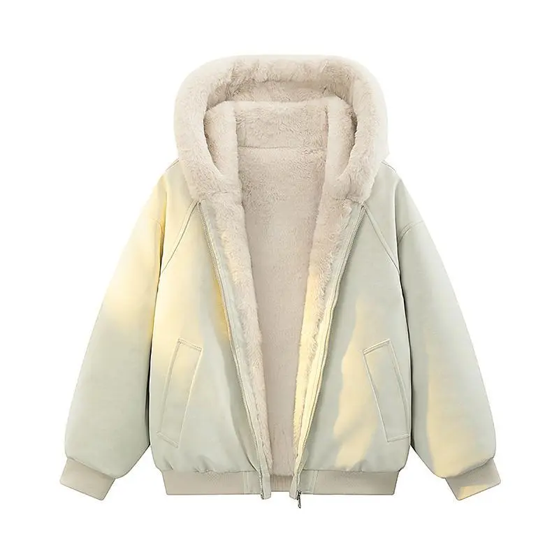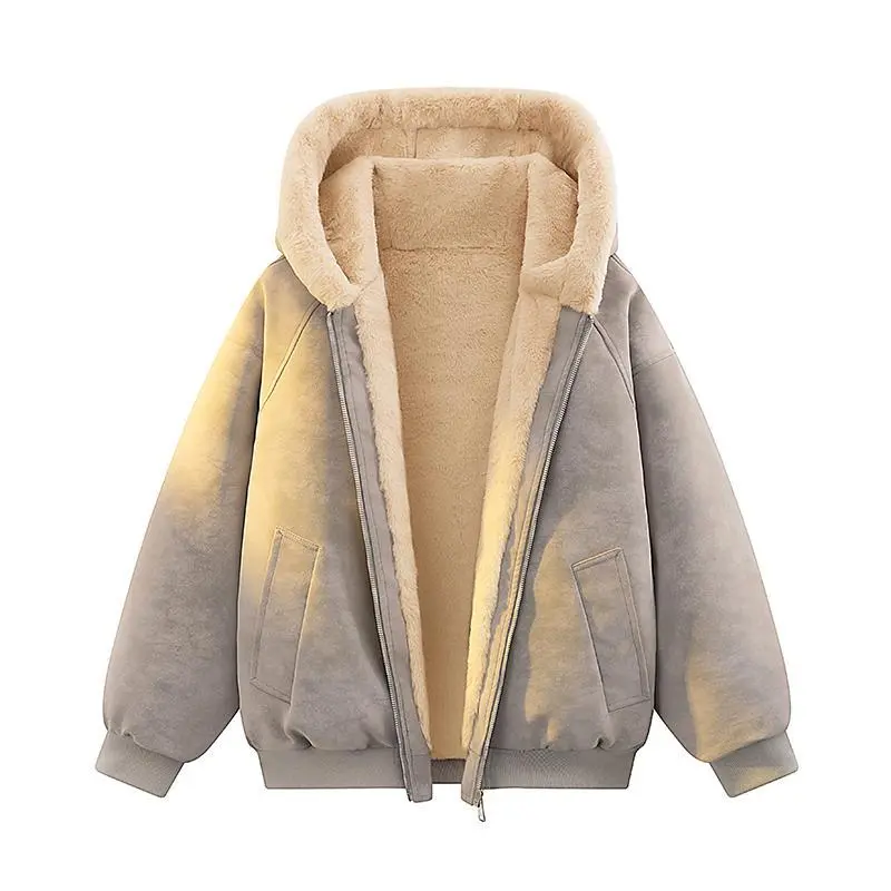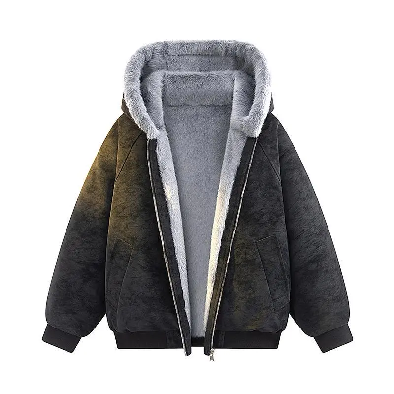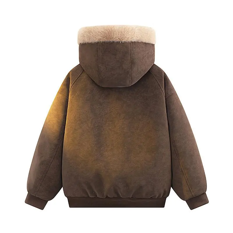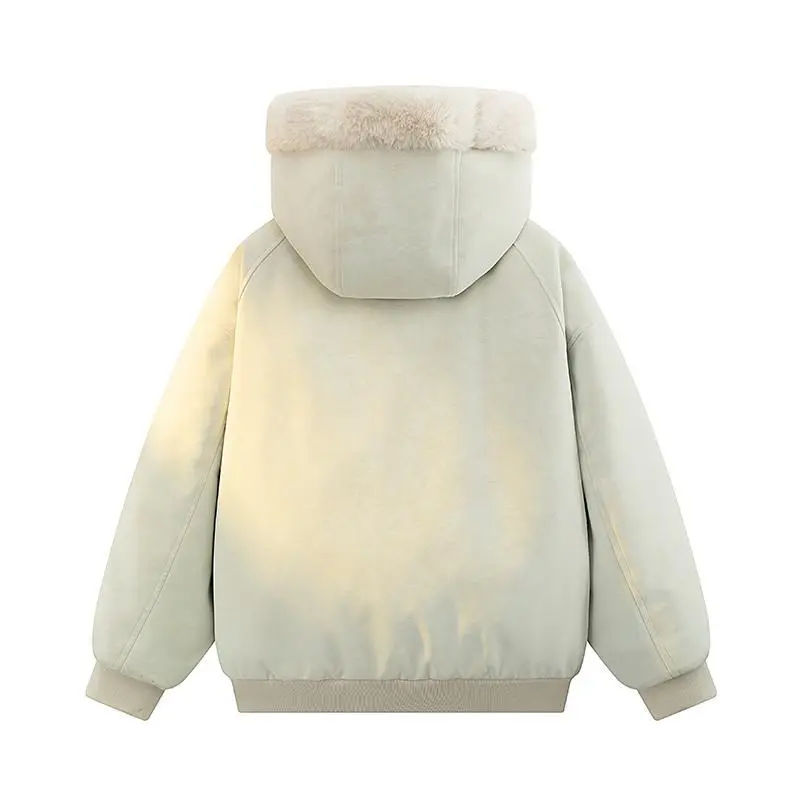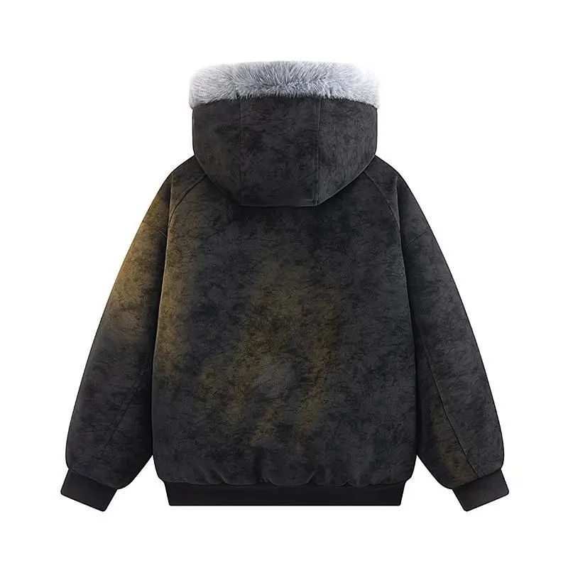 Winter Lychee Pattern Leather Hooded PU Jacket Unisex Fleece Lined Thickened Leather Fur Collar Cotton Coat for Chilly Days