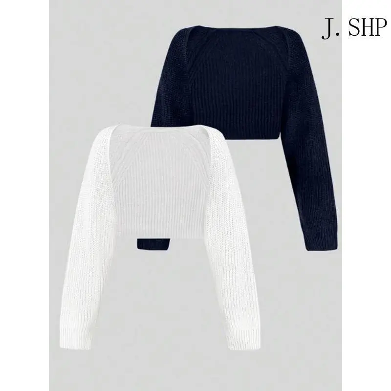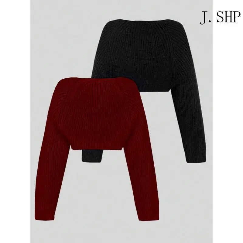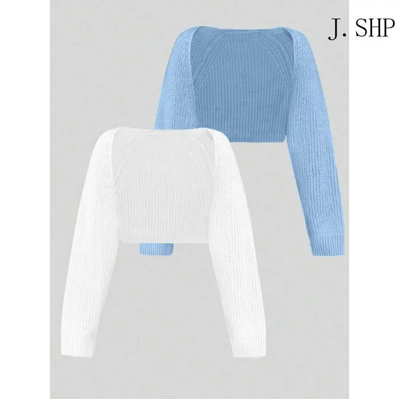 Women's Minimalist Textured Raglan Sleeve Shrug Set, Chic Open Front Sweater Cardigan, Back To School Cropped Cardigan
