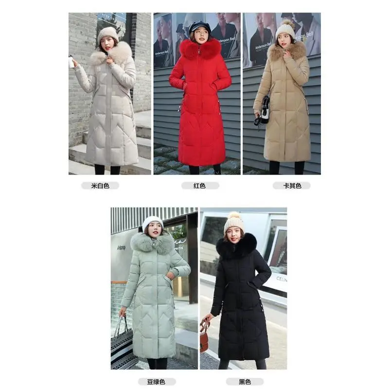 2023 New Korean Down Cotton CoatWomen Long Winter Puffer Parkas Thicken Warm Hooded Cotton-Padded Jacket Coat Zipper Overcoat Womenswear Sleeves Tops Outerwear Basic Casual