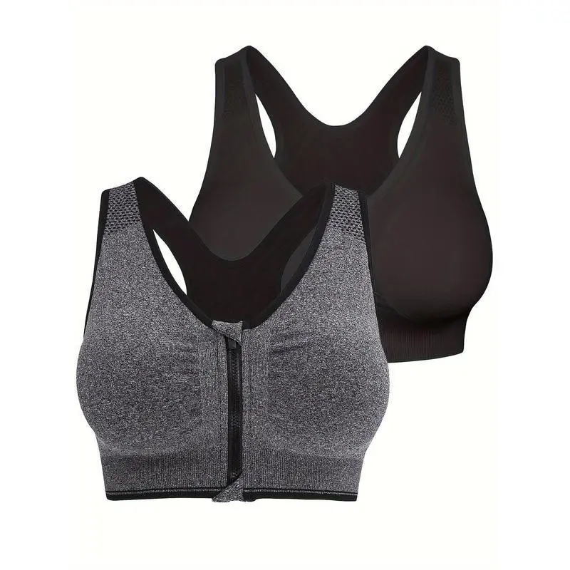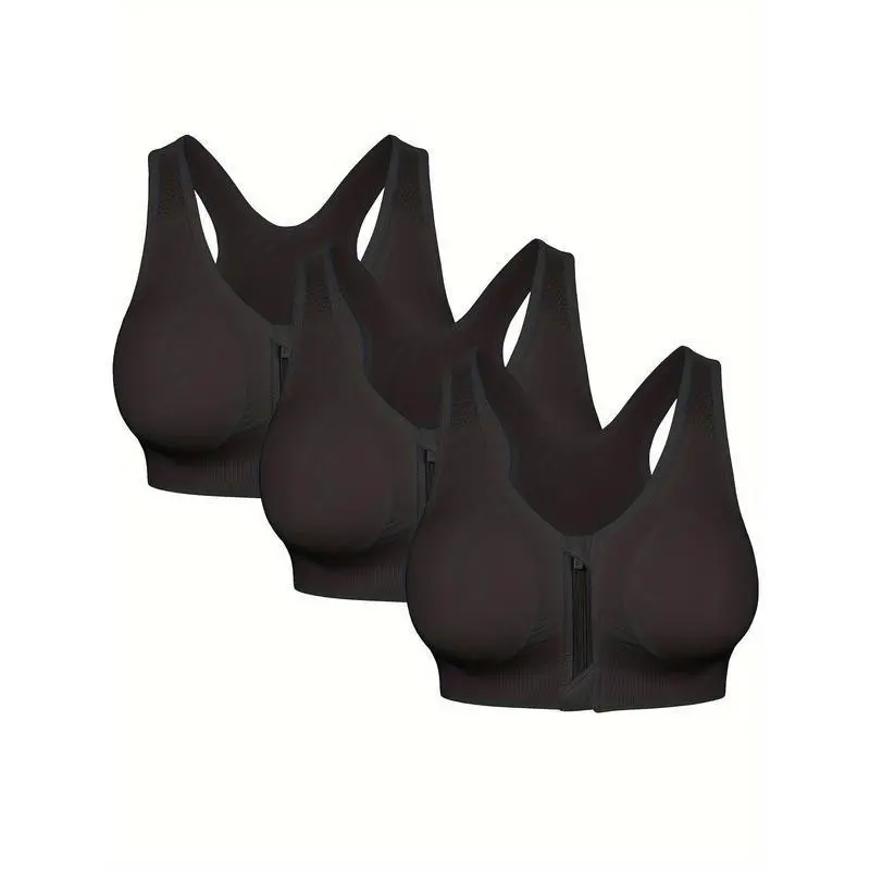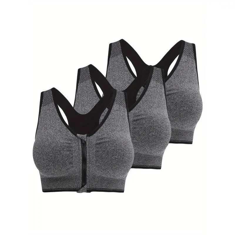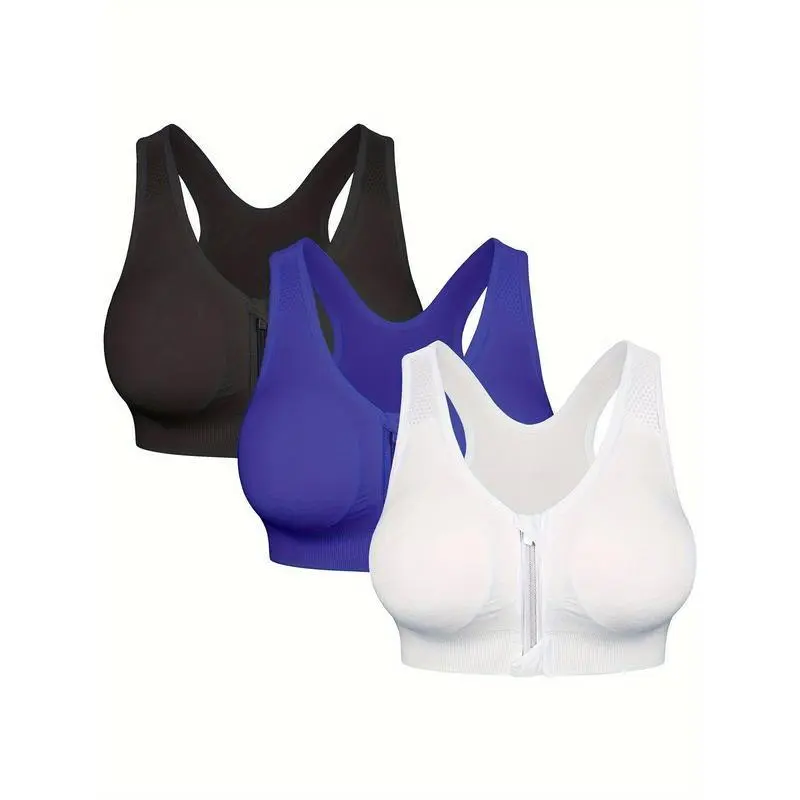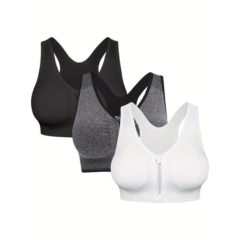 3pcs Plus Size Seamless Wirefree Zip Front Post Surgery Padded Racerback Yoga Sports Bra for Women's Activewear