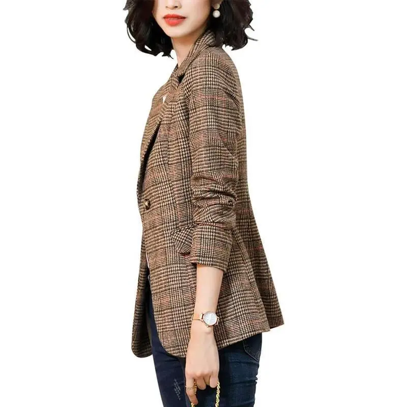 Material: Trendy houndstooth plaid blazer jacket for women, made of superior fabric, full-lined design, soft touch and skin-fiendly, providing you a comfortable wearing experience/Excellent tailoring, workmanship, enhance your confidence and power vibe in social activities/Outstanding Features: Button up, double breasted, long sleeve, buttoned cuffs, plaid houndstooth fabric, crisscrossed striped patterns, two sides practical flap pockets, chic notch lapel, a little cinched waist that beautifully accentuates a lady's slender curves, show off your charming and elegant womanliness/Matching: This women's casual slim fit blazer work suit jackets are great to pair with your casual shirts, lightweight sweaters, jeans, boots or sneakers for a stylish look.Suitable for daily life, street wear, work, business, meeting, office, speach, dinner, shopping, holiday, travel, party, vacation, festival or other semi-formal occasions/Versatile Blazer Jackets: Plaid Blazer for Women/ Houndstooth Jacket/ Notched Lapel Blazer Jacket/ Button Down Jacket/ Elegant Blazer Jacket/ Workout Jacket/ Double Breasted Blazer Jacket/ Long Sleeve Coat for Women Blazer/ Professional Business Blazer/ Office Suit Jacket/ Dressy Blazer Coat/ Casual 2-Button Boyfriend Coat/ Fully Lined Jacket/ Flap Pocket Blazer Jacket/Size Chart: XS=US 2, S=US 4-6, M=US 8-10, L=US 12-14, XL=US 16-18, XXL=US 20-22. Please carefully refer to our seller's size chart on the left picture before purchase. If you can't decide what size to buy, please don't hesitate to contact us.