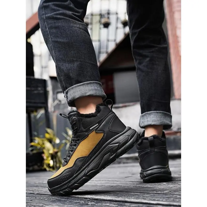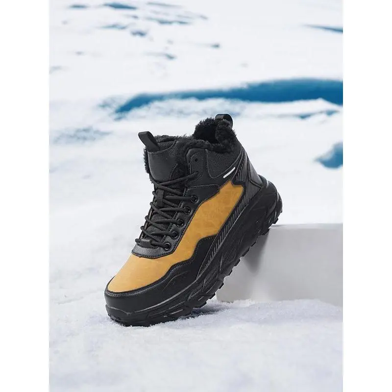 【Thermal insulation】: Featuring plush lining, these boots provide exceptional warmth in cold conditions, suitable for outdoor winter activities. 【Waterproof protection】: Constructed with synthetic leather, these boots offer reliable waterproofing to keep your feet dry during wet and snowy conditions. 【Mid-calf coverage】: The mid-calf height ensures additional ankle support and protection, making them suitable for rugged outdoor adventures. 【Anti-slip sole】: Equipped with a rubber and plastic sole, these boots enhance traction on slippery surfaces, ensuring secure footing. 【Sporty aesthetics】: The patchwork pattern and contrasting colors create a sporty look, appealing to outdoor enthusiasts seeking functional footwear.