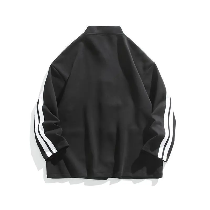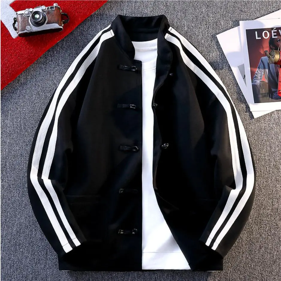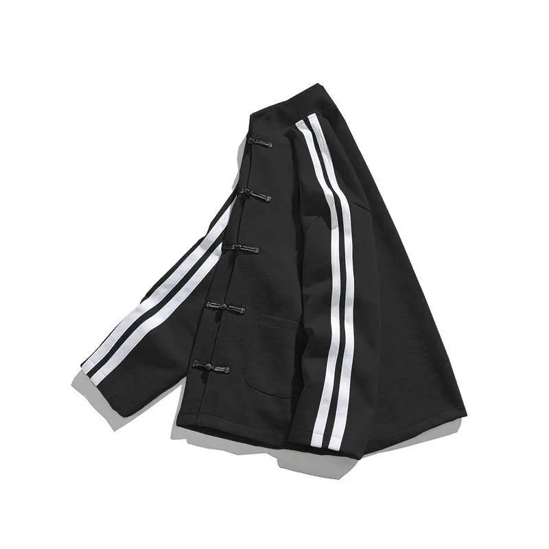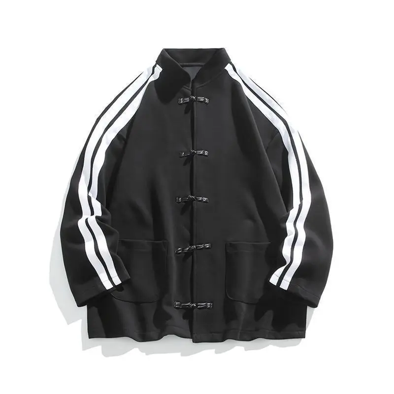 Chinese Style Button Cardigan Design Heavyweight Sweatshirt Loose Trendy Top Coat Couple New Men's Clothing Menswear Jackets Gamis Long Sleeve Casual Stripe Striped Fashion Black Tights Fashionable Outerwear