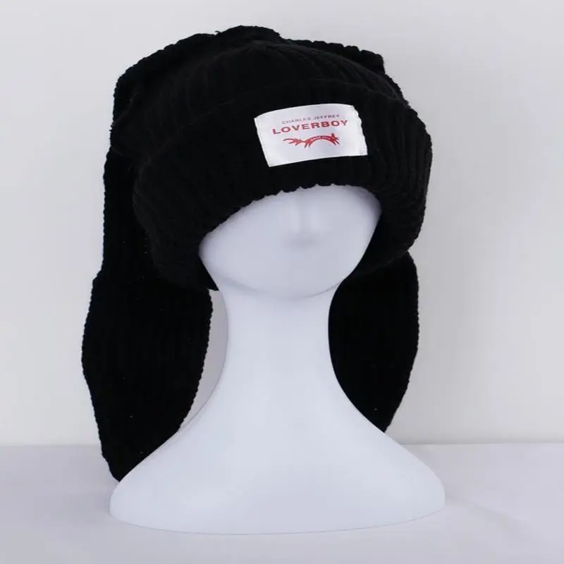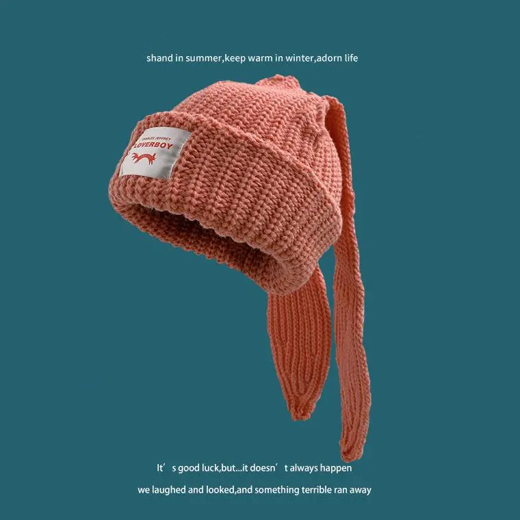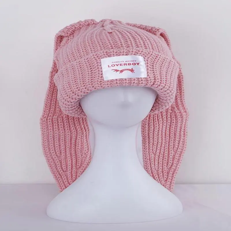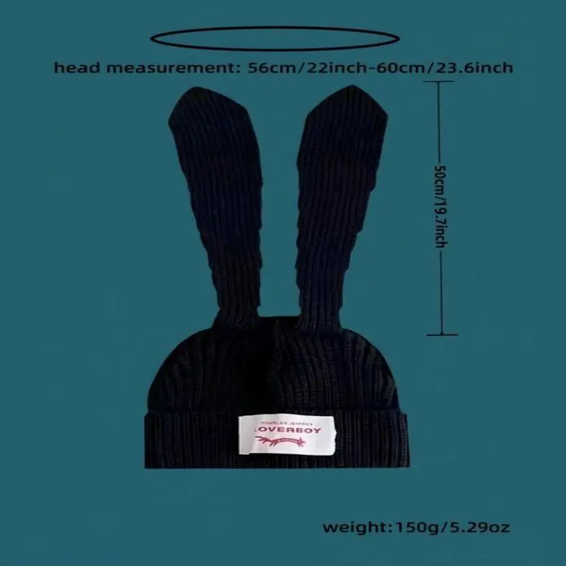 Cute Rabbit Ear Design Beanie Hat, Casual Trendy Knit Hat for Fall & Winter, Fashion Accessories for Both Men & Women | Women's Thick Knitted Ski Beanie