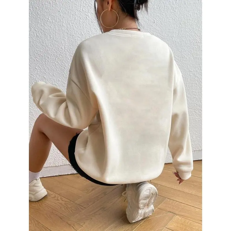 Eagle & Letter Graphic Print Round Neck Pullover, Fashion Women's Clothing, Warm Comfortable Fabric, Casual Loose Fit Long Sleeve
