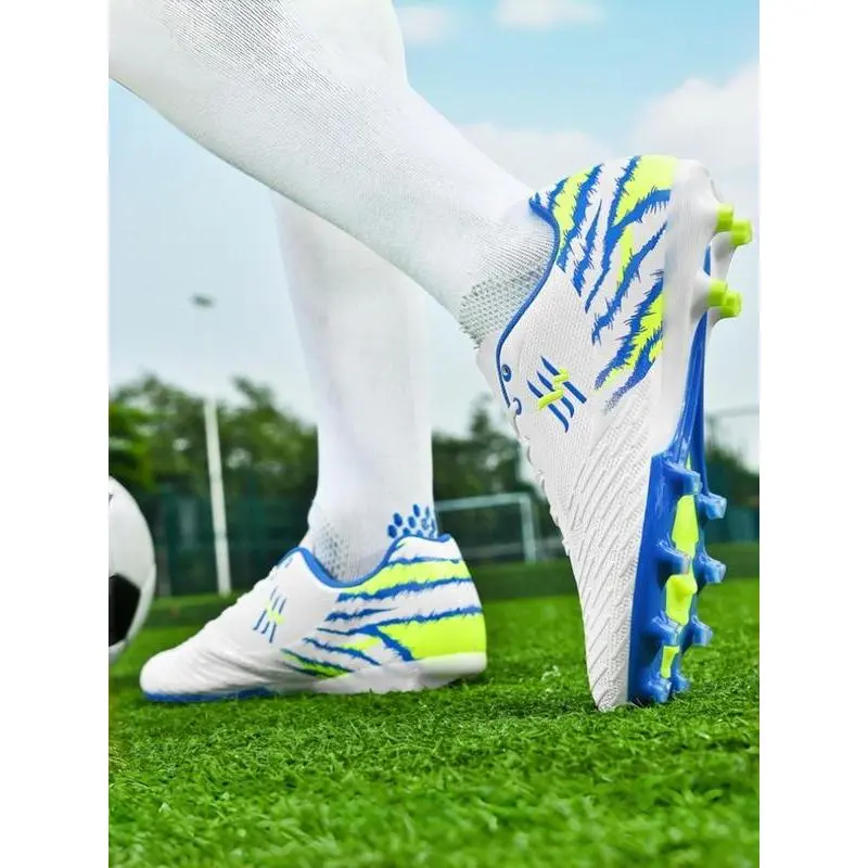【Unique Tiger Stripes】: Features a distinctive tiger stripe pattern that sets it apart from standard soccer shoes, appealing to those seeking individuality. 【Superior Ball Control】: Engineered with a specialized upper material for enhanced ball control, meeting the demands of competitive play. 【Adaptable Cleat Structure】: Incorporates a unique cleat configuration for improved traction and adaptability on various pitch surfaces. 【All-Season Use】: Designed for performance in all seasons, ensuring that athletes can train and compete year-round without limitations. 【Medium Width Fit】: Offers a medium width fitting that accommodates a wide range of foot shapes, ensuring a snug yet comfortable hold.