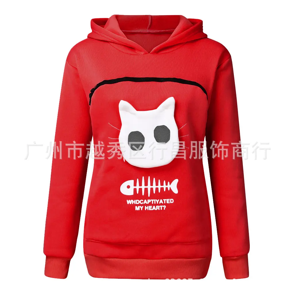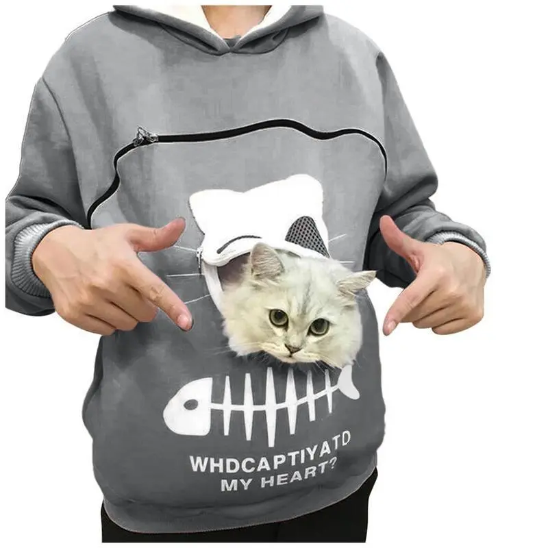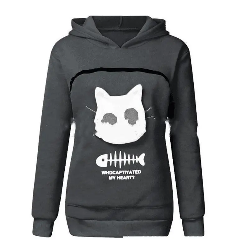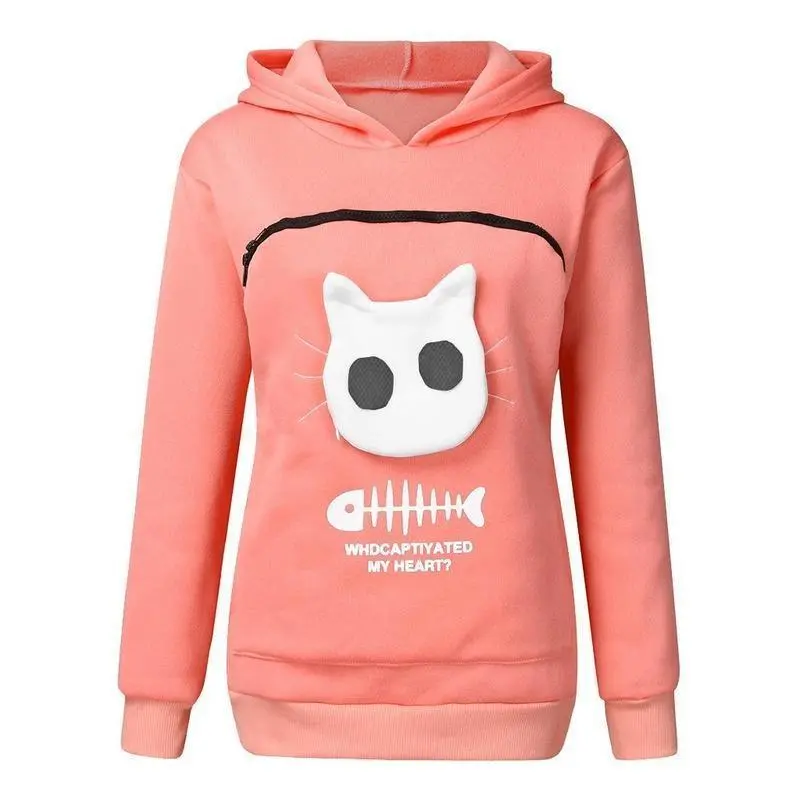 Women Hoodie Sweatshirt With Cat Pet Pocket Design - Long Sleeve Sweater Cat Outfit