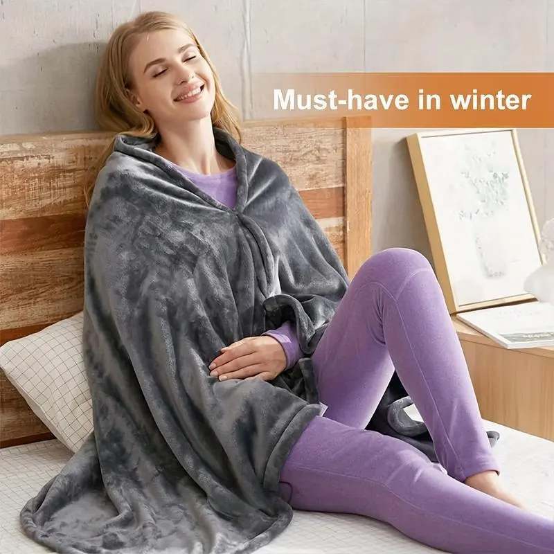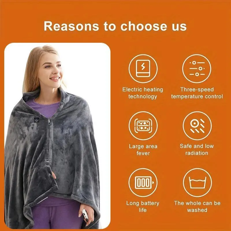 1PCS USB Heated Hooded Blanket Top, Wearable Heated Blanket, Electric Shawl - Heated Cloak Windbreaker Blanket with Hood for Adults. A winter gift with a super warm design, featuring 3 heating settings, comfortable large pockets,