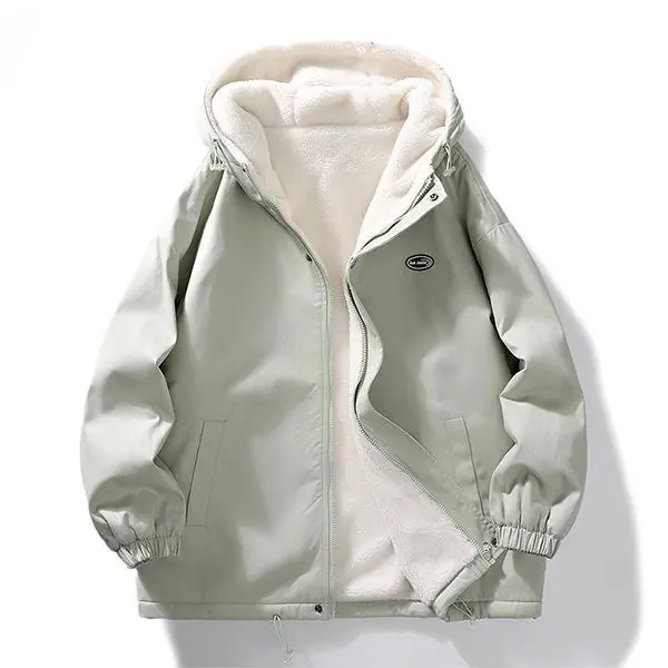 🌟 Men's Light Khaki Hooded Fleece Jacket 🌟 This men's light khaki hooded fleece jacket is a cozy and trendy choice for fall and winter. The contrast sherpa lining and hooded design make it a perfect addition to your wardrobe.