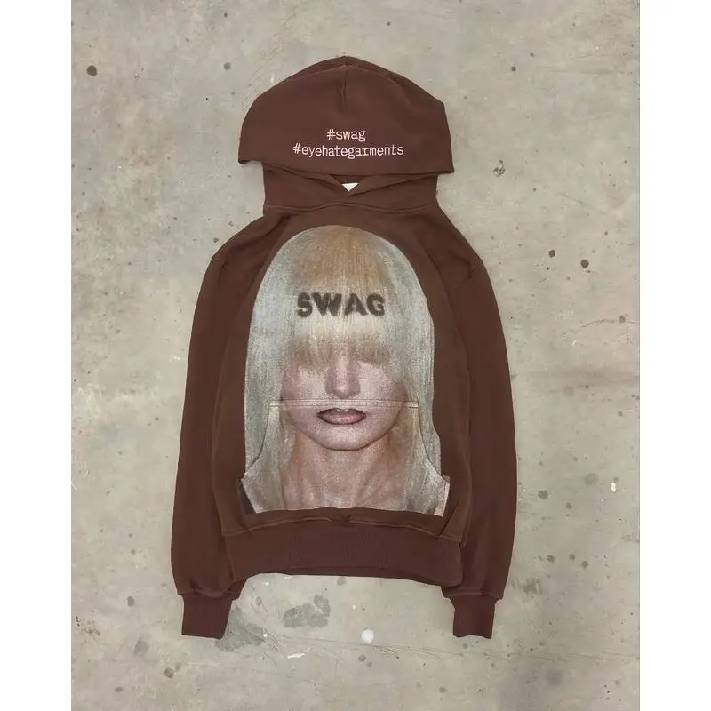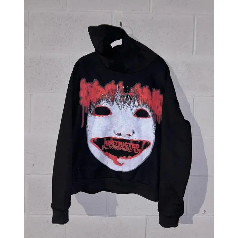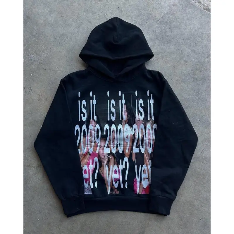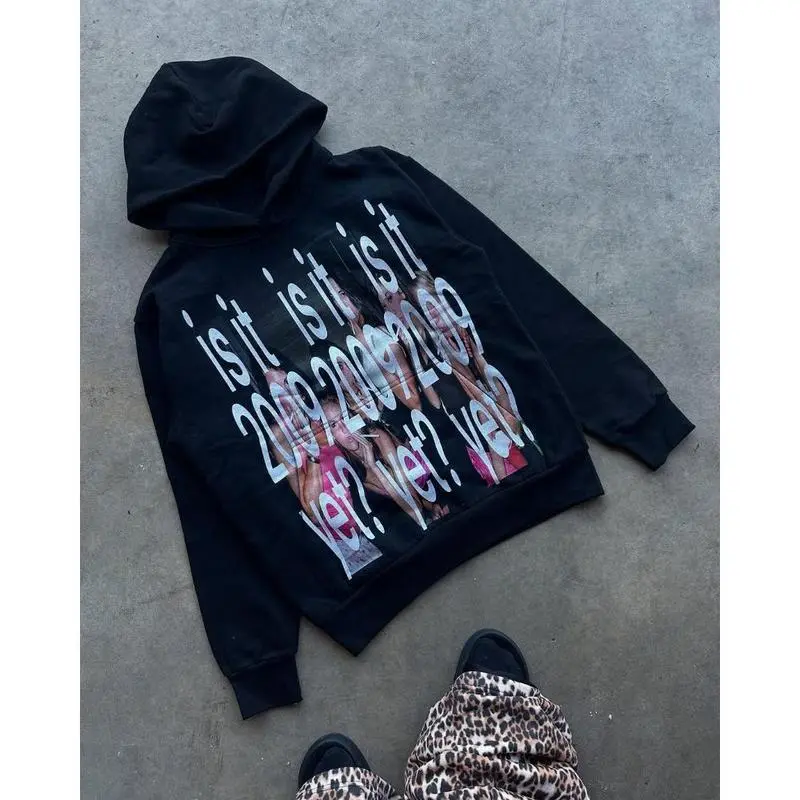 Y2k streetwear trend letter cartoon pattern print oversized hoodie women's fashionable Harajuku loose and versatile hoodie