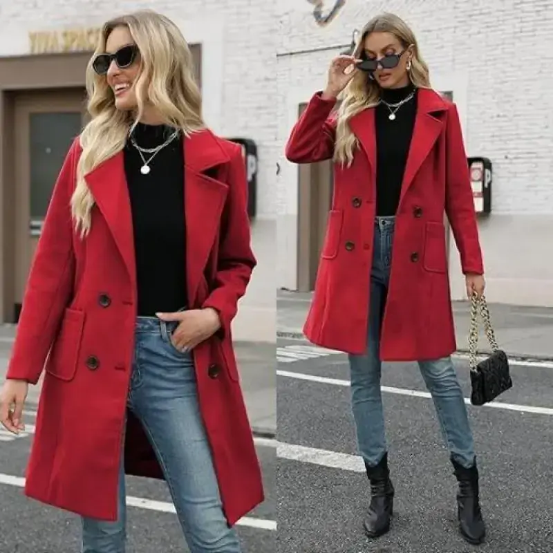 Button Closure/Material: High-quality polyester fabric, breathable, comfortable, and warm/Women's Mid-Length Coat, Solid Color Jacket, Long Sleeve, Front Button Design, Double Breasted, Turn-Down Collar, Two Side Pockets, Two Decorative Buttons on the Back, Simple Style/A basic elegant short coat for women that accentuates feminine curves and elegance; a thick and warm trench coat that is perfect for women in winter/It is recommended to hand wash or dry clean, please do not bleach