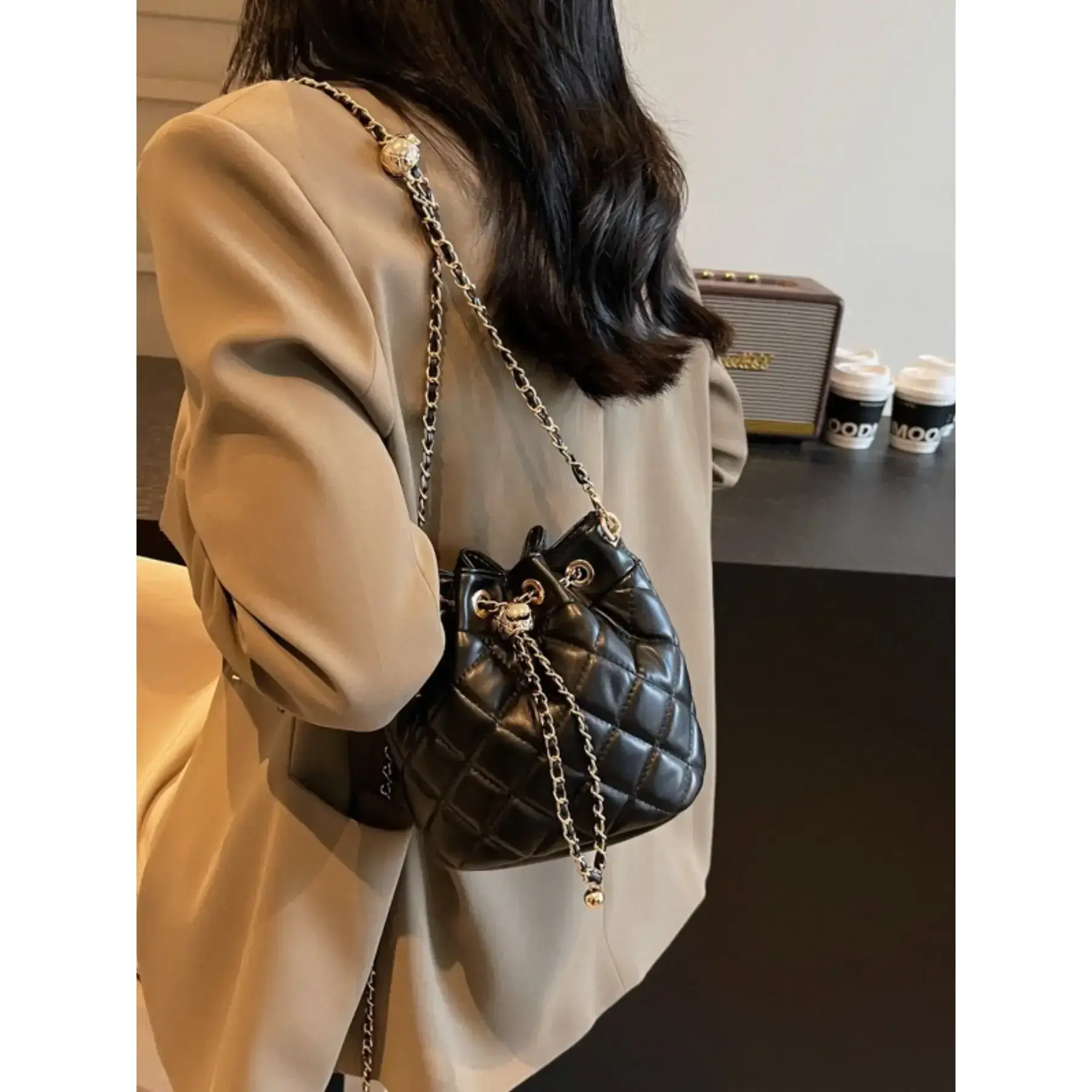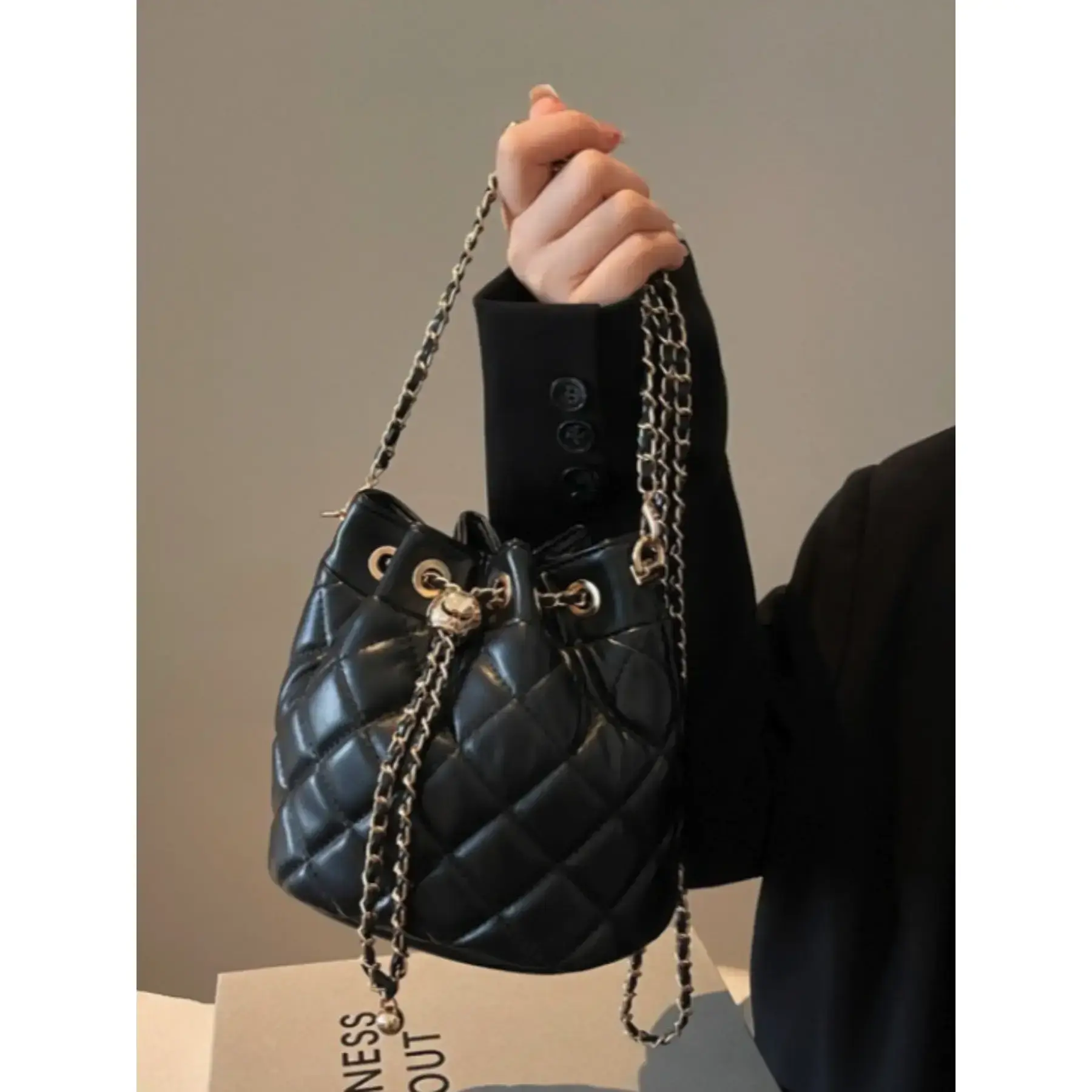 【Metal Accents】: Incorporates metallic decorations, enhancing its visual appeal while distinguishing it from standard bucket bags. 【Multiple Uses】: Functions as a sling bag and a hand-held tote, suitable for evening events or daily outings. 【Textured Fabric】: Crafted in quilted leather, delivering both durability and a distinctive tactile experience. 【Pattern Variation】: Available in a plaid and plain pattern, catering to diverse aesthetic preferences. 【Seasonal Versatility】: Designed for all seasons, allowing easy integration into any wardrobe throughout the year.