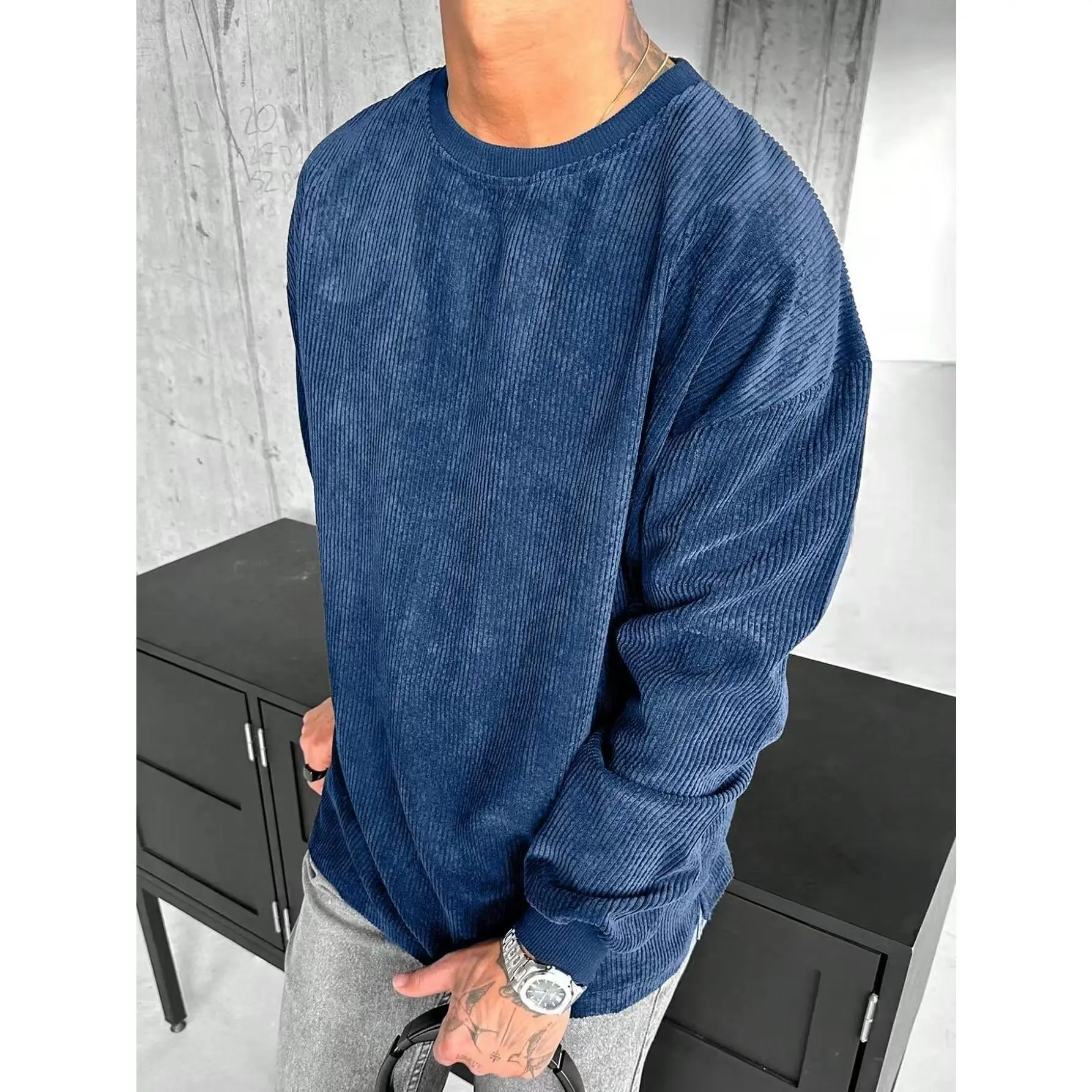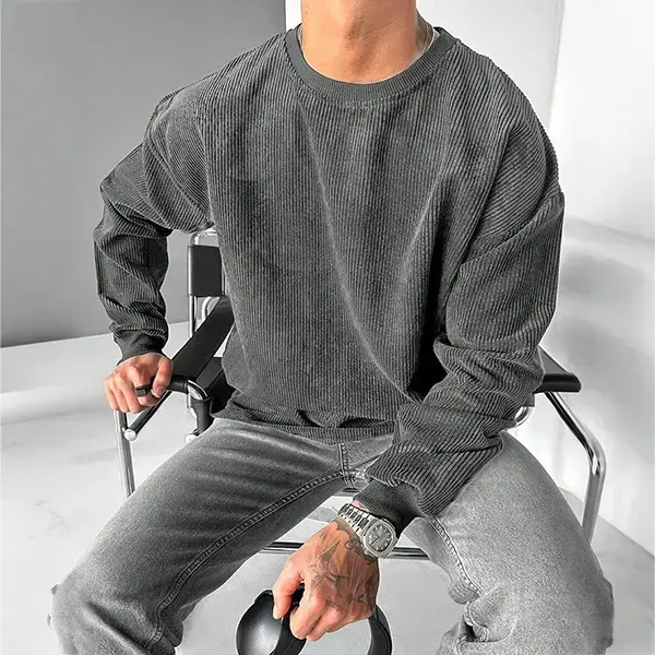 Men's Corduroy Sweatshirt This men's corduroy sweatshirt is designed for comfort and casual wear.It features a solid color design with a round neckline, suitable for various occasions.Perfect for everyday wear, this sweatshirt is a must-have in any wardrobe. This sweatshirt is an ideal choice for those who pursue comfort and casualness.It's very versatile can wear it in many occasions