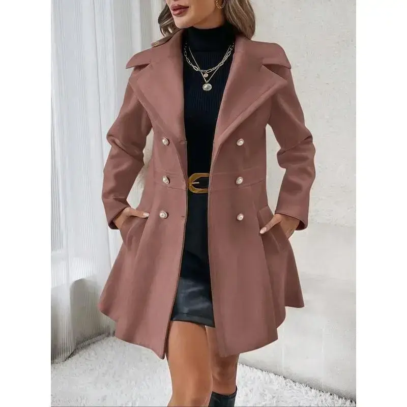Women's Solid Double Button Pocket Overcoat, Casual Long Sleeve Lapel Neck Outerwear for Fall & Winter, Clothes Daily Wear, Clothing Women, Cute Tops, Jackets Women Elegant White Womenswear