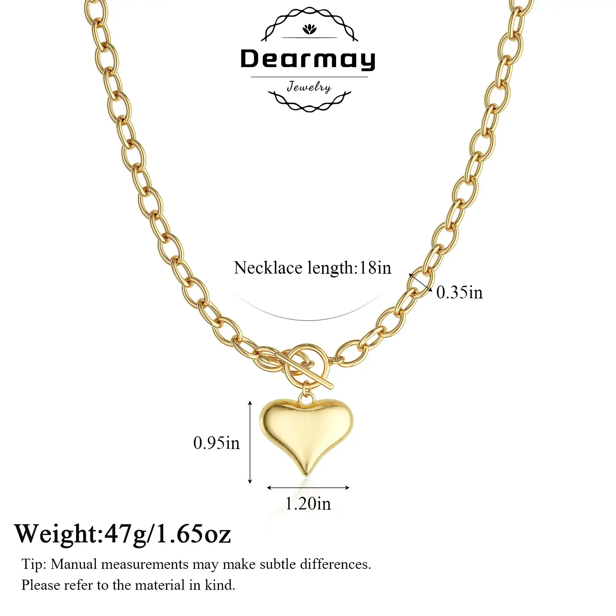 Dearmay Chunky Gold Necklace for Women ✨ Statement Chunky Heart Pearl Pendant ✨