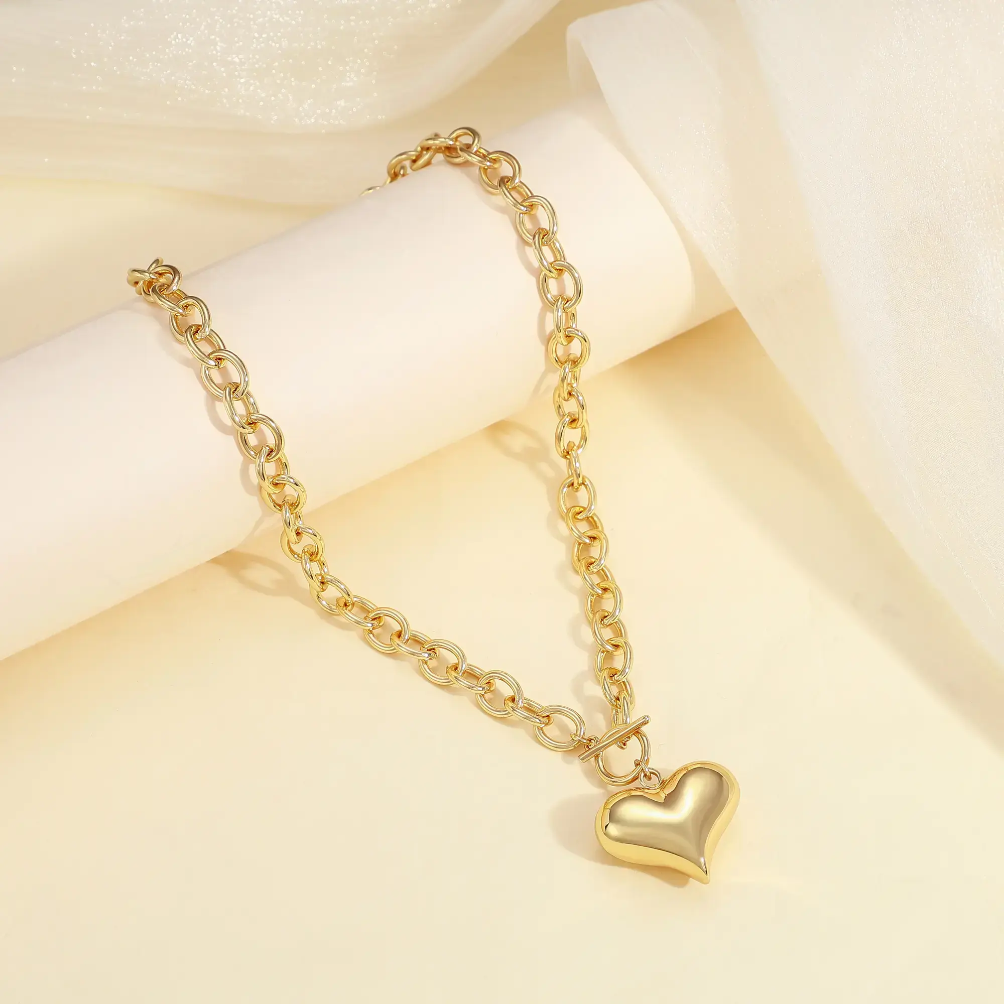 Chunky Gold Necklace for Women - Statement Chunky Heart Pendant Necklace, Non Tarnish Stainless Steel Statement Charm Cuban Chain Necklaces, Trendy Jewelry Christmas Birthday Gift for HerGift