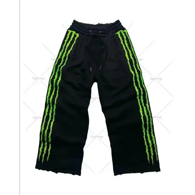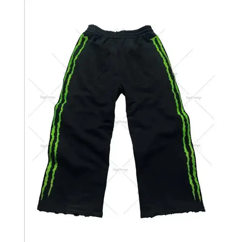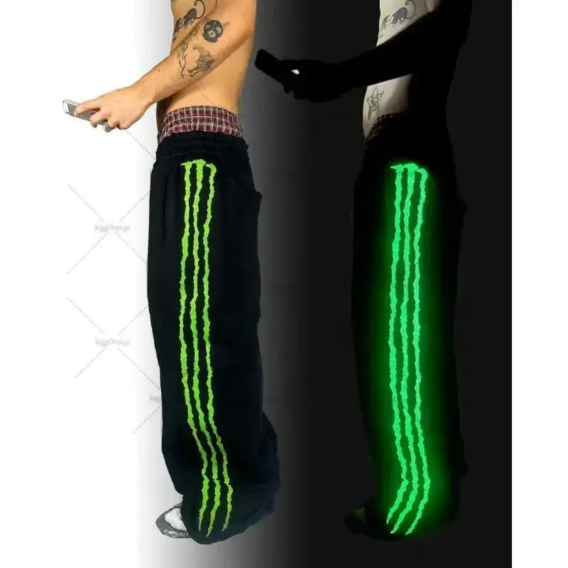 Sky Blue High Street Men Retro Reflective Striped Baggy Sweatpants Harajuku Gothic Punk Wide-leg Pants Hip-hop Streetwear Casual Classic Trouser baggysweatpants Menswear(gift)