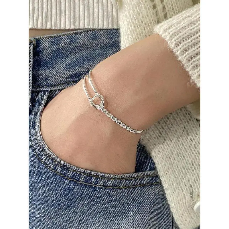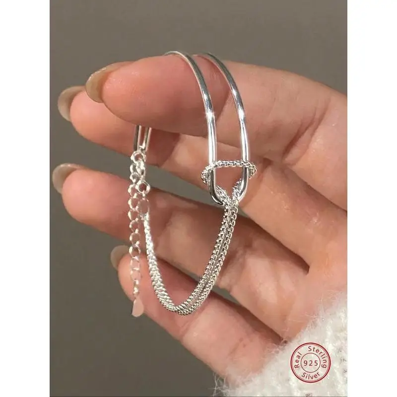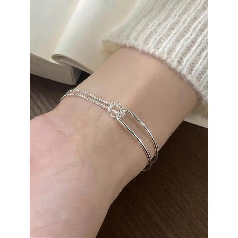 S925 Sterling Silver Double Layer Chain Bracelet, Fashionable Jewelry for Women & Girls, Trendy All-match & Exquisite Jewelry Back To School, Gifts with Box, Silver Jewelry, Bf and Gf Bracelet, Adjustable Link Bracelet