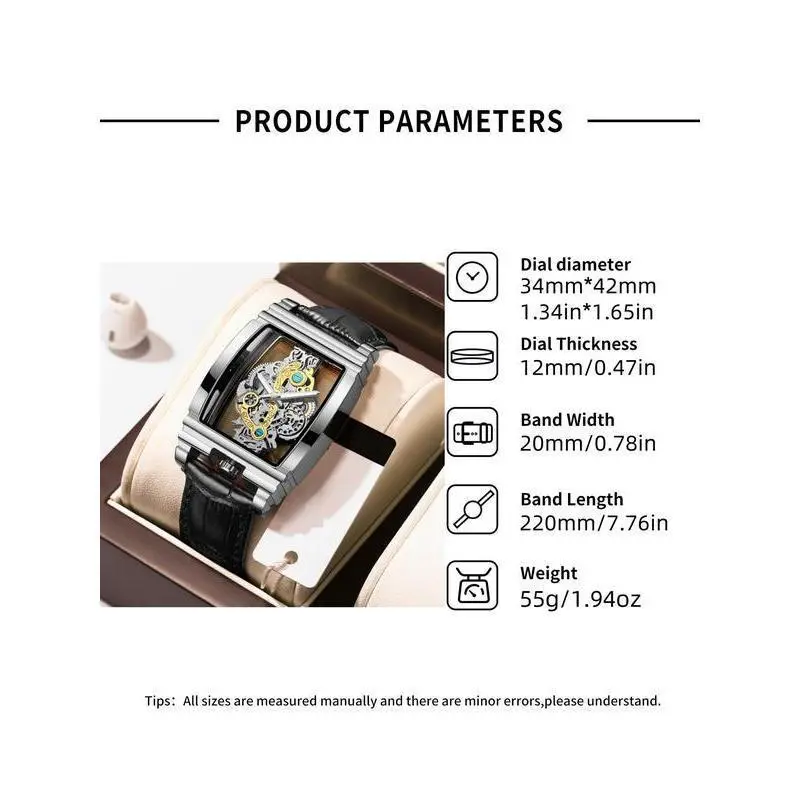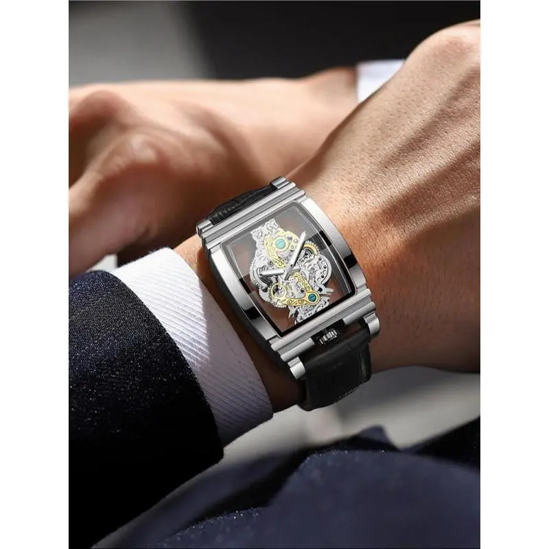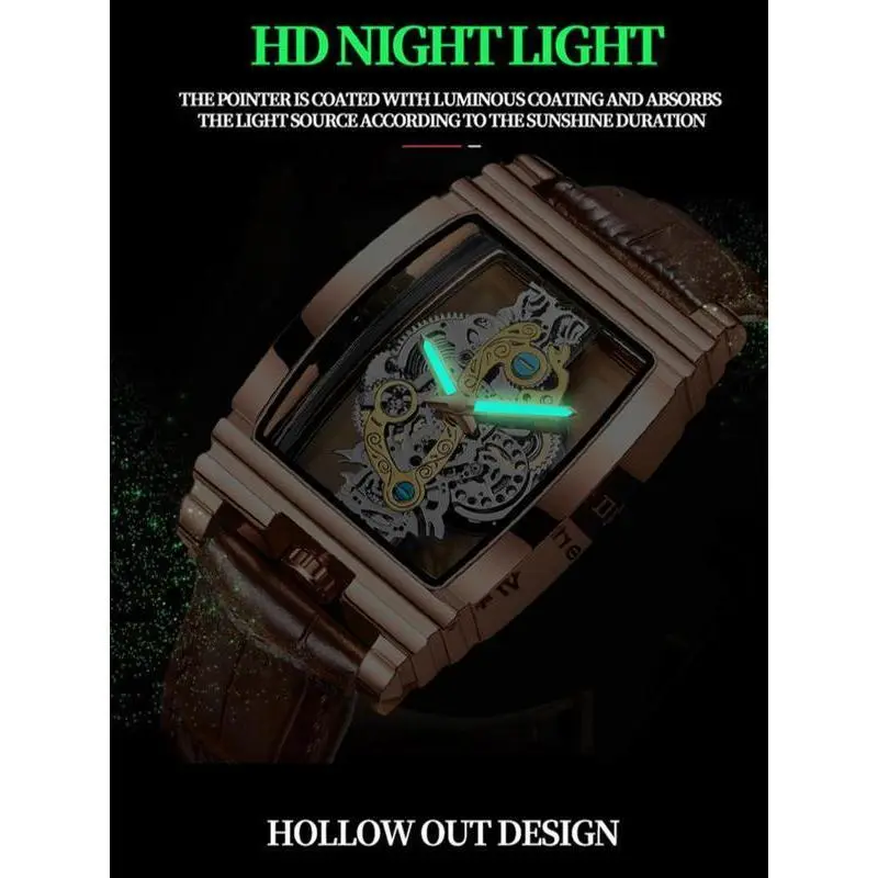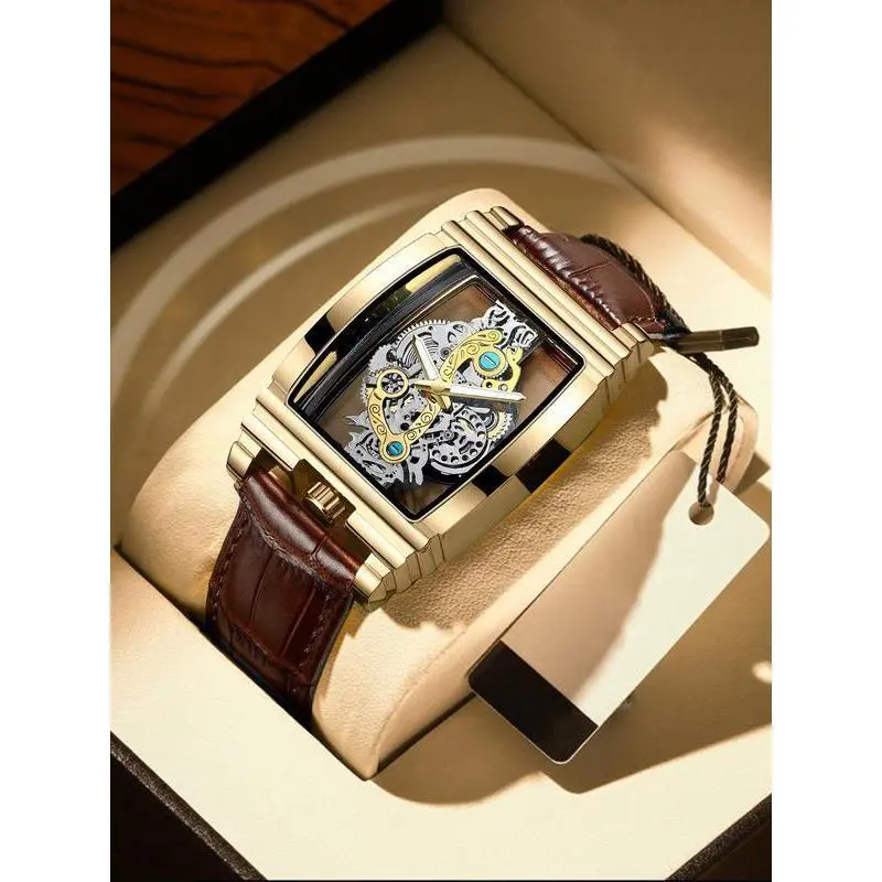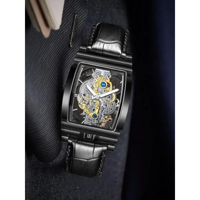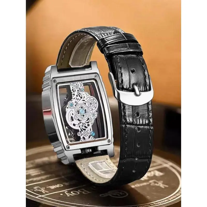 Men's Punk Fashion Barrel Shaped, Mechanical Style Skeleton Watches for Party, Daily Decor, Trendy All-match & Exquisite Watch for Birthday Gift with BoxGift