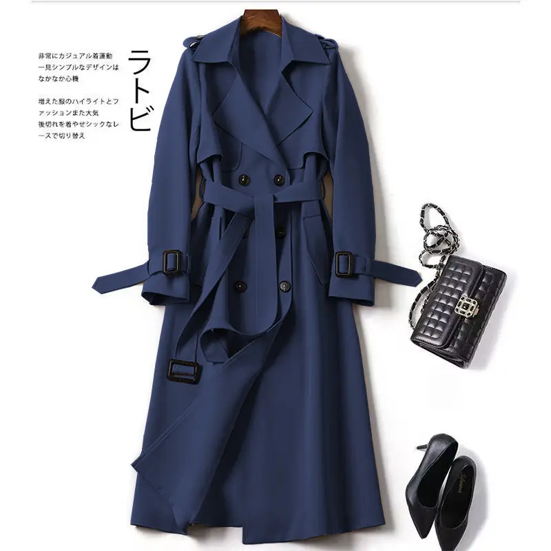 Women's Solid Double Button Belted Trench Coats, Elegant Lapel Neck Long Sleeve Coat for Fall, Winter Wear Casual Wear, Women's Casual Jackets Outerwear for Daily Wear, Winter Clothes Women, Coats for WomenXCC121(Raincoats)
