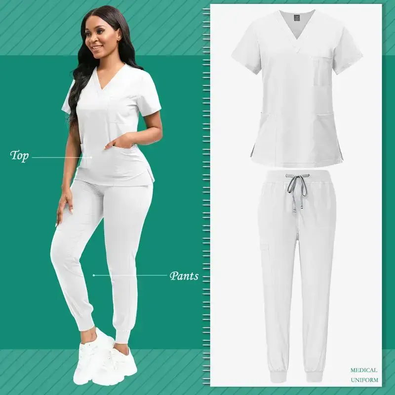 1 Set Women's Polyester Scrubs, Fitted Nurse Uniform with Patch Pocket, Woven Work Clothes for Beauty SPA, Veterinary Dentistry - High-Quality Professional Apparel, Nurse Accessories for Work(gift)Gift