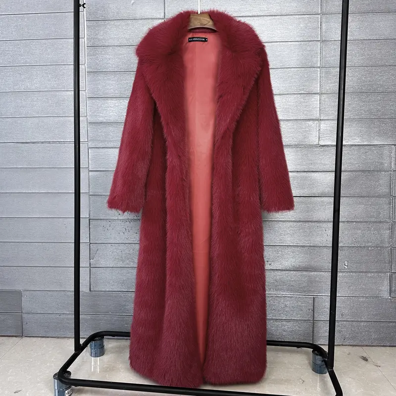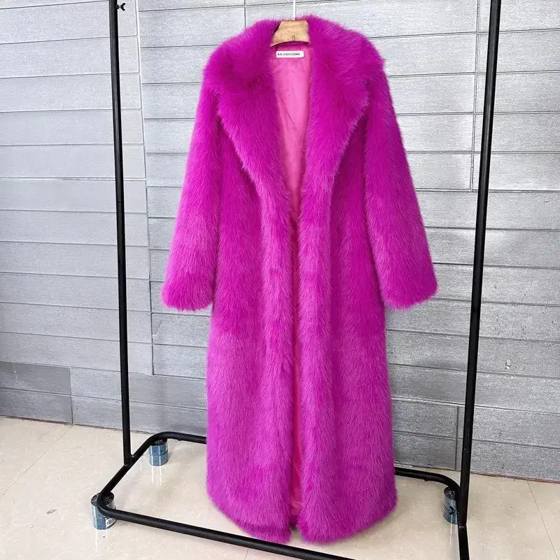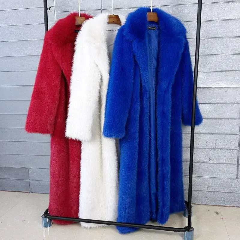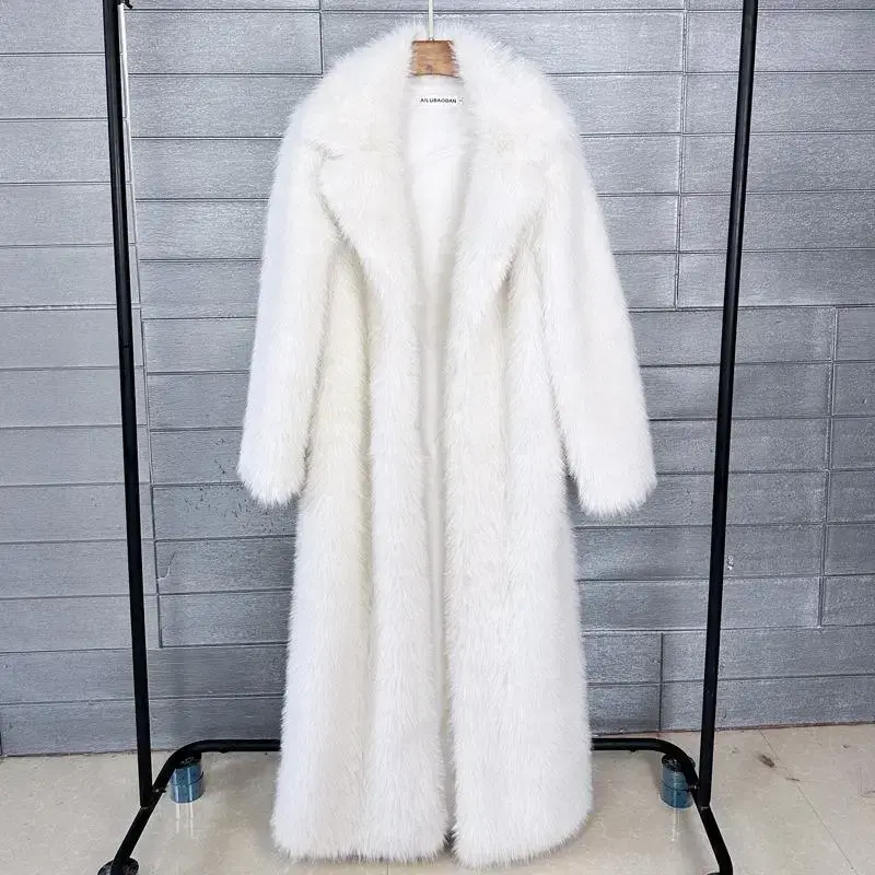 Long Faux Fur Coat Women Autumn Winter Large Jacket Overcoat White Turn Down Collar Pockets Thick Coat Warm Jackets Maxi Coats