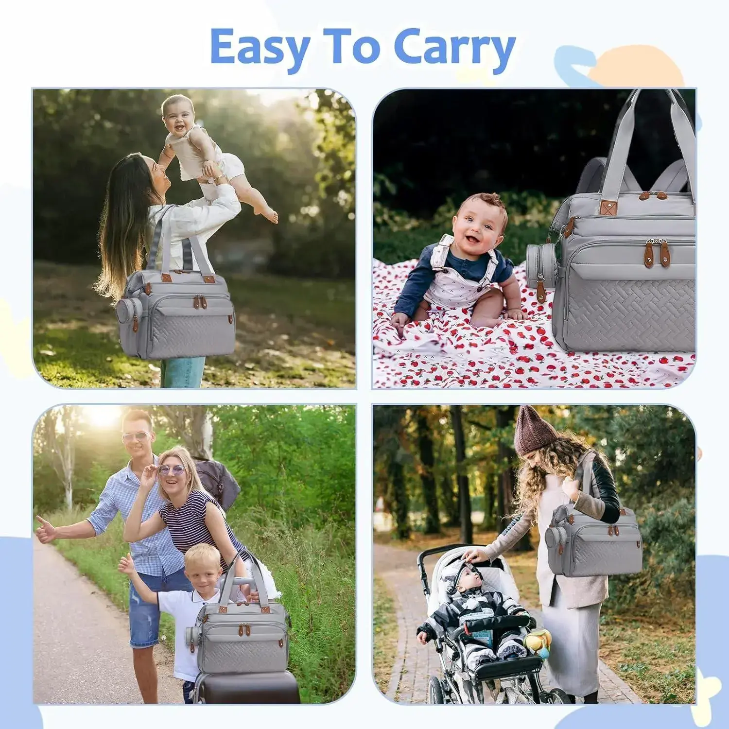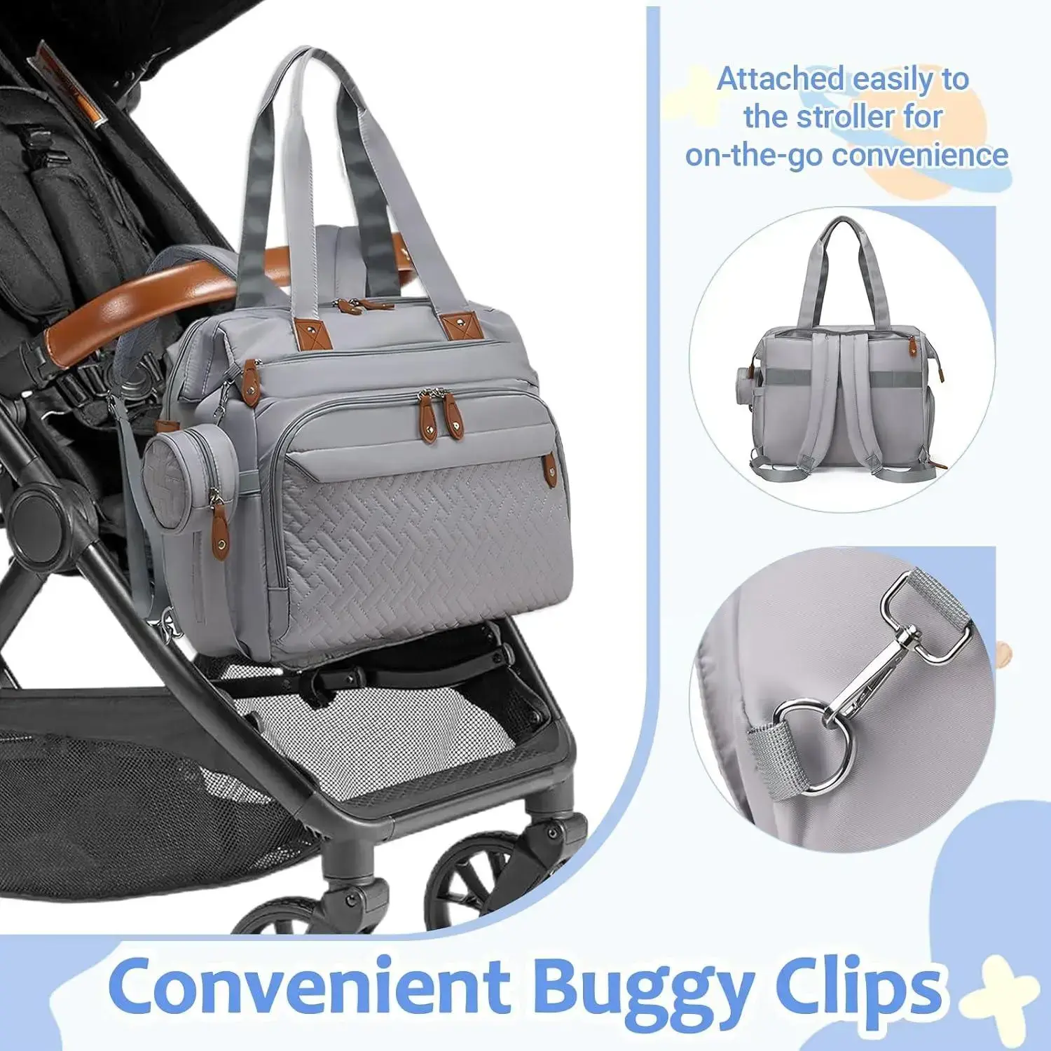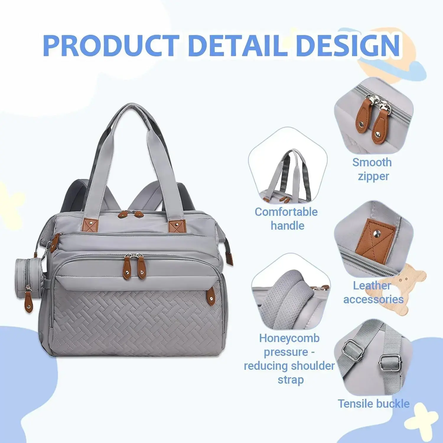 【Large Capacity】: This mom bag offers ample storage space, making it easy to organize all your baby essentials while on the go. 【Dual Versatility】: Equipped with both hand-held and backpack options, this bag adapts to your carrying preferences for added convenience. 【Practical Organization】: Featuring multiple compartments, this bag keeps everything—from diapers to bottles—neatly arranged and easily accessible. 【Durable Material】: Made from robust materials, this bag ensures long-lasting use, standing up to everyday wear and tear. 【User-Friendly Features】: Designed with busy parents in mind, it provides easy access and efficient functionality for everyday outings.