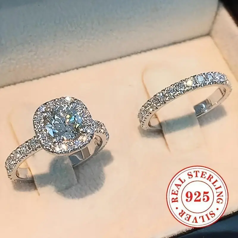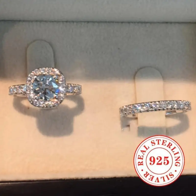 Valentine's Day 2-Piece Set for Women - 4.9g 925 Sterling Silver Elegant Luxurious April Birthday Wedding Banquet Ring Set with Classic Four-Prong Design gifts2