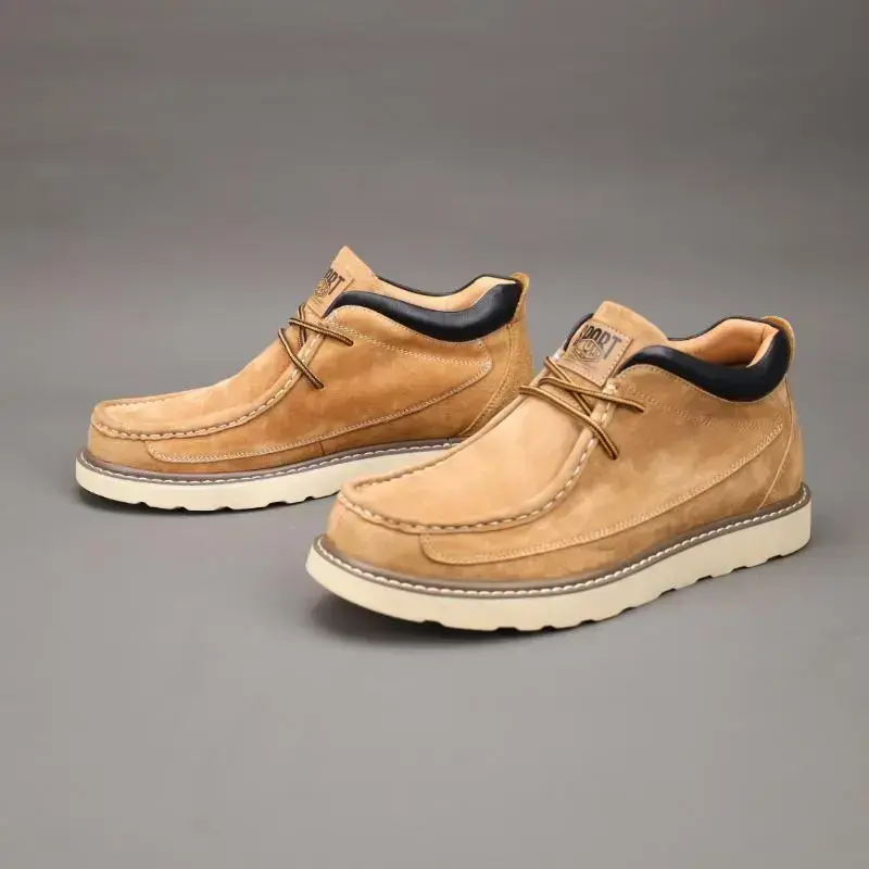 Inner Material:Synthetic leather Upper Material:Split cow leather Sole Material:Rubber Insole Material:Microfiber Scene:Daily & Casual,Party,Street Boot Height:Ankle Boots Closure Type:Lace Toe Cap:Round Toe Style:Casual,Fashion,Minimalist Season:All-season,Spring/summer,Fall/Winter Pattern:Solid color Applicable People:Male Item ID:DH 415296 Origin:Zhejiang,China