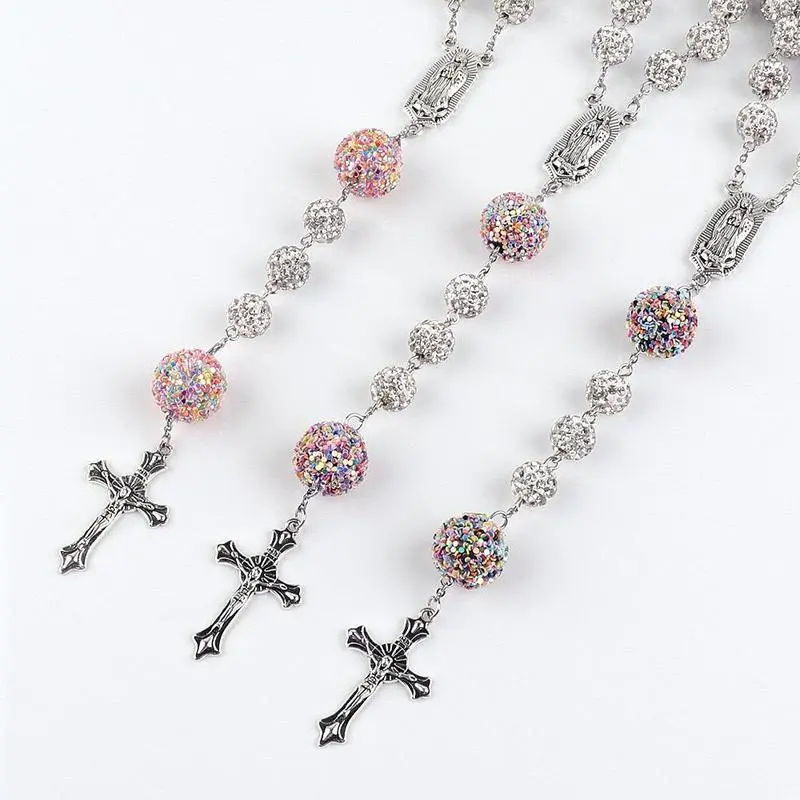 Rosary necklace(colored beads),Vibrant Multicolor Rosary Cross Pendant Necklace - Christian Religious Symbol, Perfect Christmas Easter Holiday GiftGift