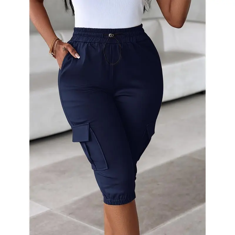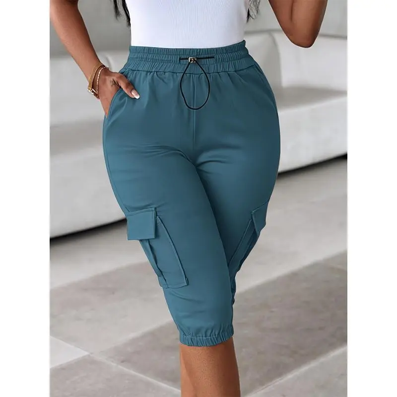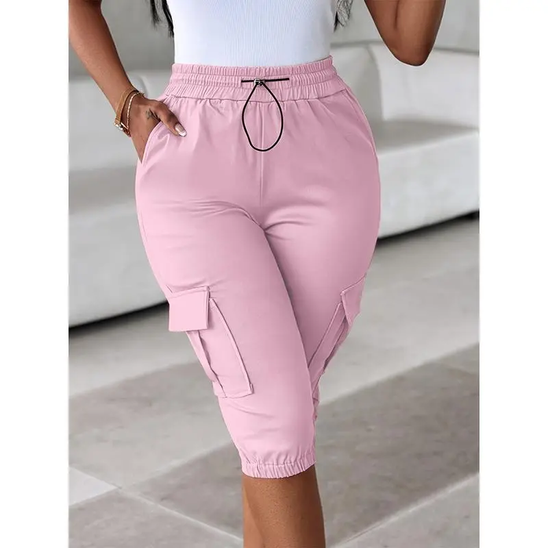 (New)Casual Shorts with Drawstring for Women - Red, Comfortable Stretch Fabric, Multiple Pockets, Summer Casual Wear, Casual Style, Drawstring Waist