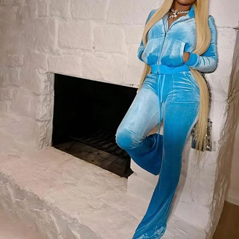 Ideal for any outdoor activities or lounging at home, this Blue Velour Track Suit is a great addition to your wardrobe. The blue color adds a pop of color to your look while the velour material keeps you cozy all day long.