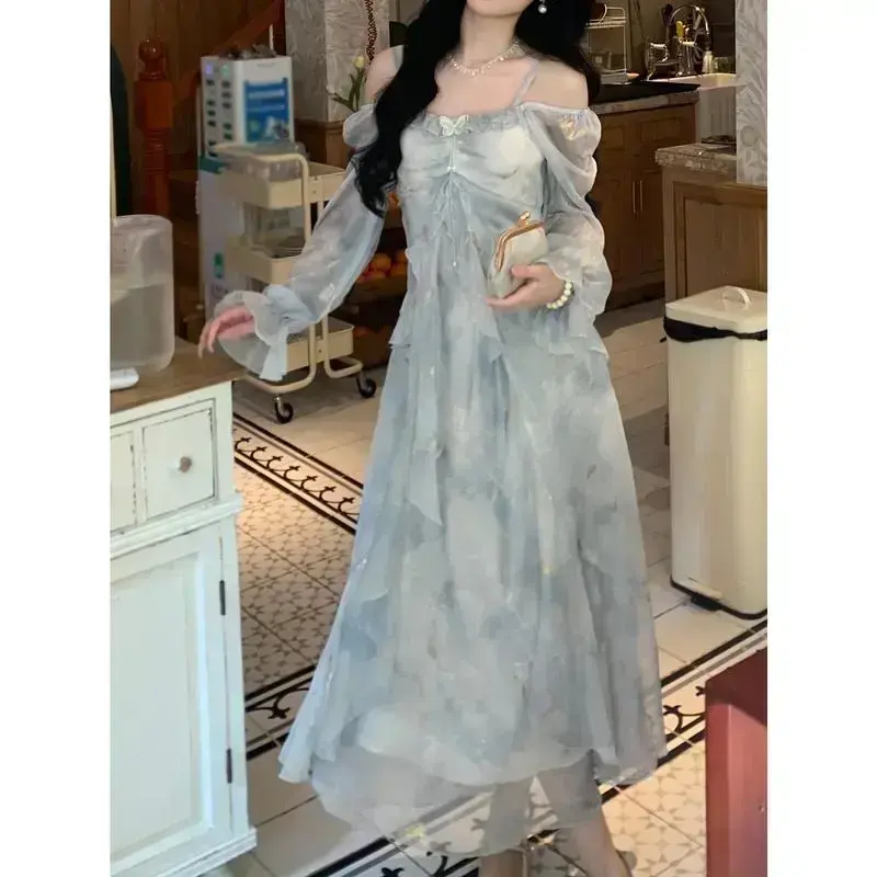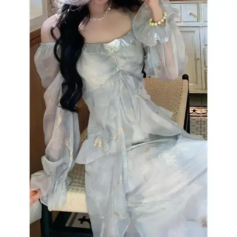 Ingredients: 100% Polyester Fiber (Polyester) Polyester/Material: Polyester Fiber (Polyester)/Length: Long/Belt: No/Sleeve Length: Long Sleeve/Sleeve Type: Regular Sleeve/Straight Sleeve/Chest Pad: No Chest Pad/Hem Shape: A- line Straight/Details: Ruffles/Pattern: Floral Print, Tropical Print/Applicable People: Adults/Is it transparent: No/Skirt length: long paragraph/Skirt type: Tight at the top, loose at the bottom/Type: A Pendulum/Profile: A/Season: Spring/Summer/Care Instructions: Machine Washable and Non-Dry Cleaning/Version: Regular/Fabric Elasticity: Non-Elastic/Printing Type: Random Printing/Weaving Method: Woven/Collar Type: off-Shoulder/off-Shoulder Collar/Lining Ingredients: 100% Polyester Fiber (Polyester) Polyester/Product Number: QP 830567/Origin: Guangdong, China