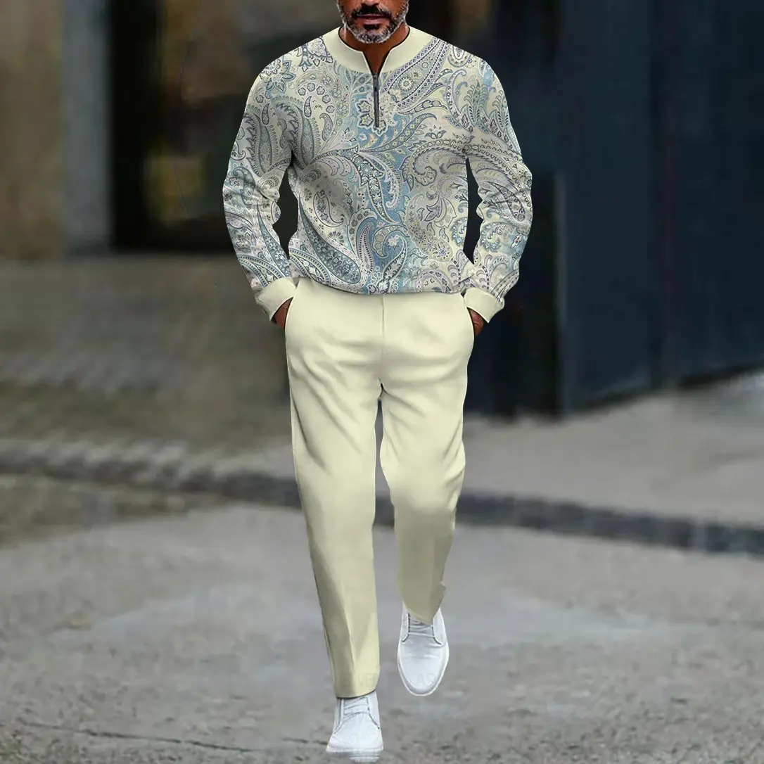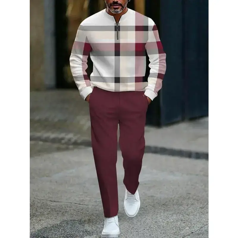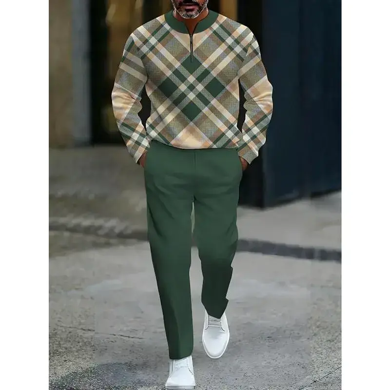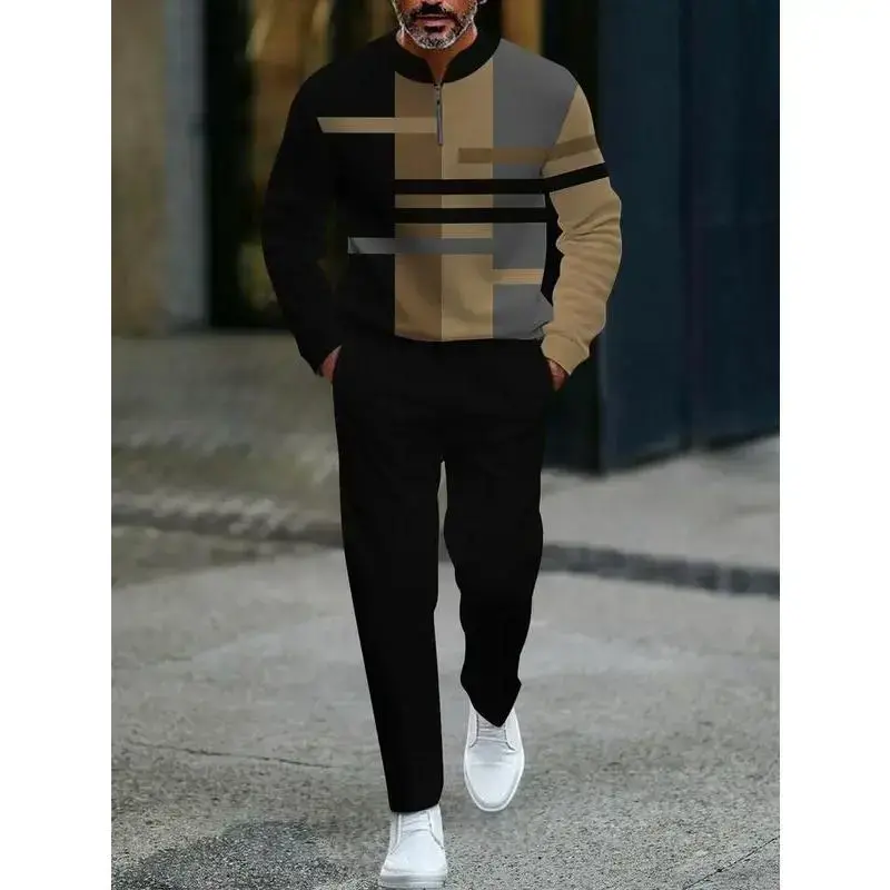 Men's Two-Piece Set Popular New Release Zip-Up Pullover Long-Sleeve Fashion Sportswear Set Paired with Drawstring Long Pants Casual Set Suitable as a Holiday Gift Christmas Halloween