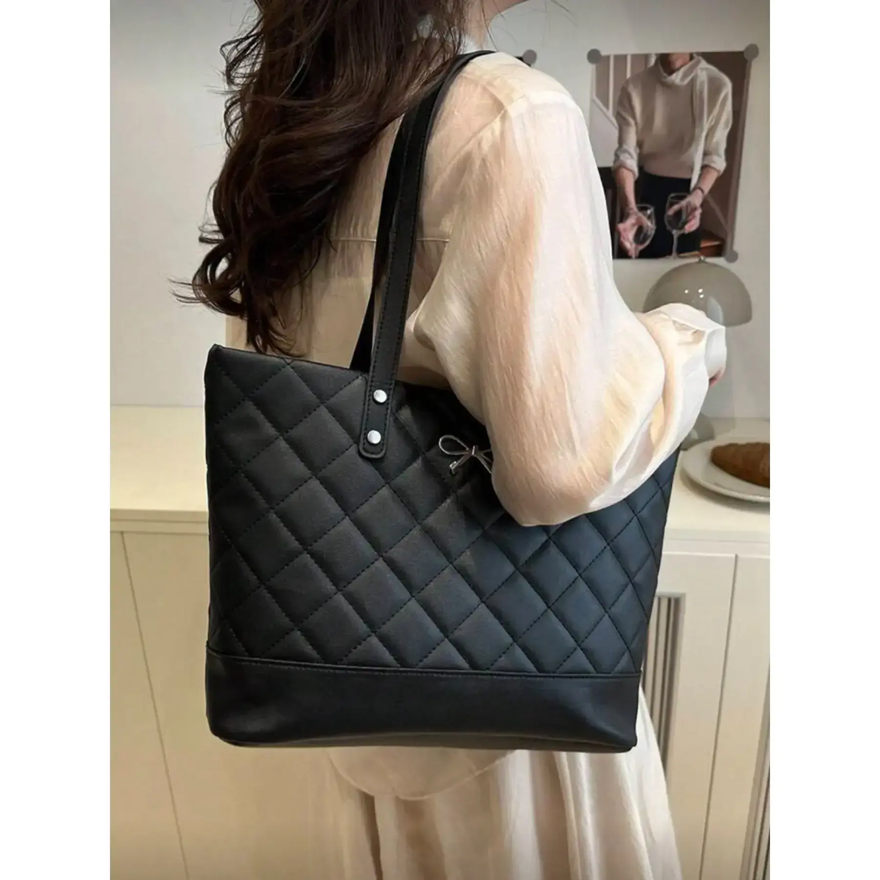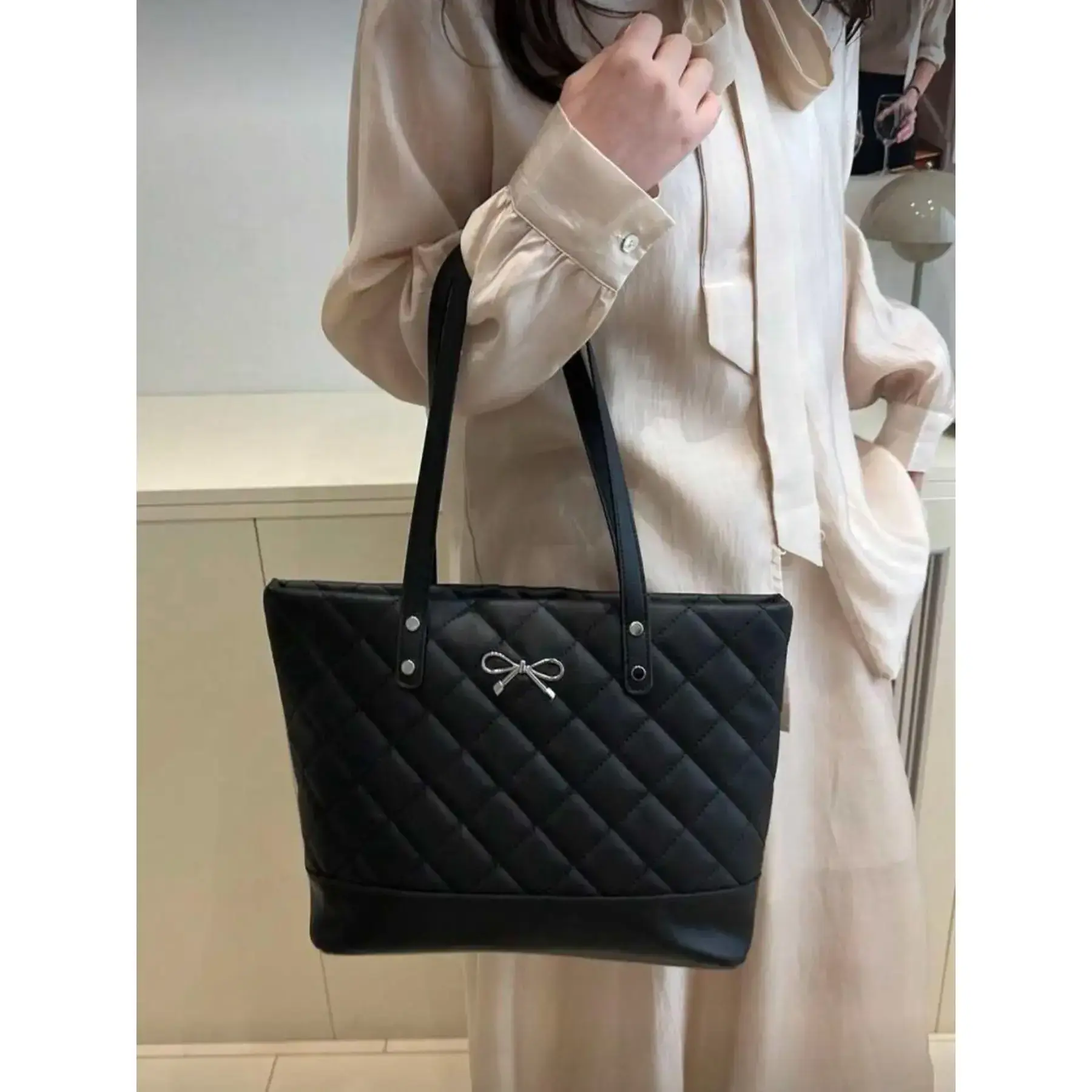 【Large Capacity】: Features a generous interior space, providing ample room for carrying all essentials and more. 【Unique Bow Closure】: Showcases a distinctive bow detail, adding a playful touch to the handbag's overall appearance. 【Diamond Pattern】: Exhibits a modern diamond quilt pattern, ensuring a unique aesthetic that stands out among totes. 【Year-Round Use】: Designed for all seasons, making it a suitable choice for varying weather contexts and occasions. 【Simple Colors】: Comes in plain color options, ensuring easy match with various outfits and personal styles.